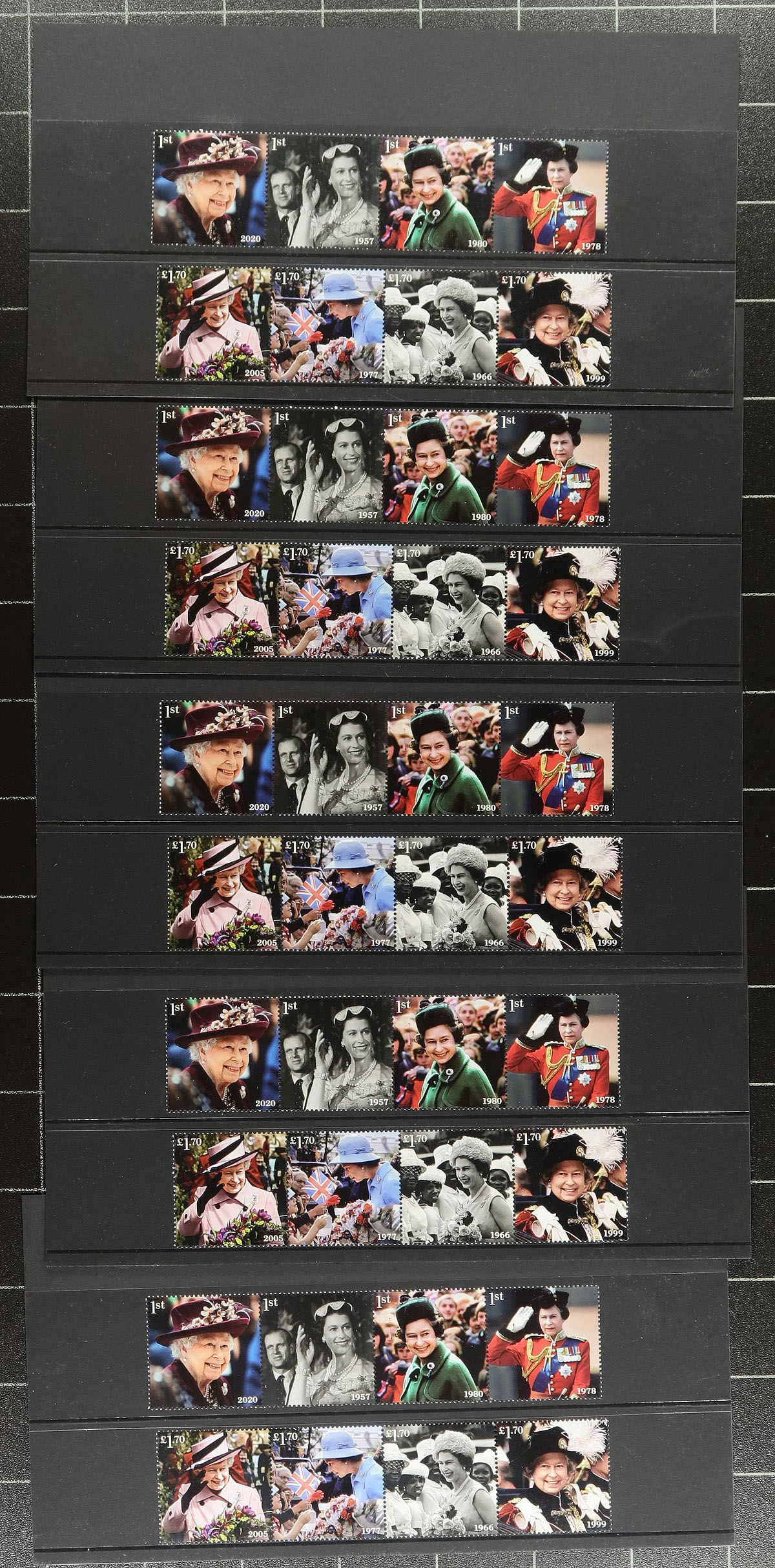 Lovely modern group of transitional Great Britain, 2022-2023, containing singles, booklet panes, and first day covers. The lot contains stamps near the end of Queen Elizabeth reign, with Scott #4194-4201 (10 strips in total), along with booklet panes of 2022 Machin stamps, and a group of King Charles III definitive issues, noting 1ST, 1st Large Letter, 2ND, and 2ND Large Letter issues. The lot rounds out with a few first day covers, including 3 numismatic covers (2 celebrating the new King Charles III Reign). Face value alone totaling £248.00 ($457.40 CDN). A super clean group for all collectors. Estimate =