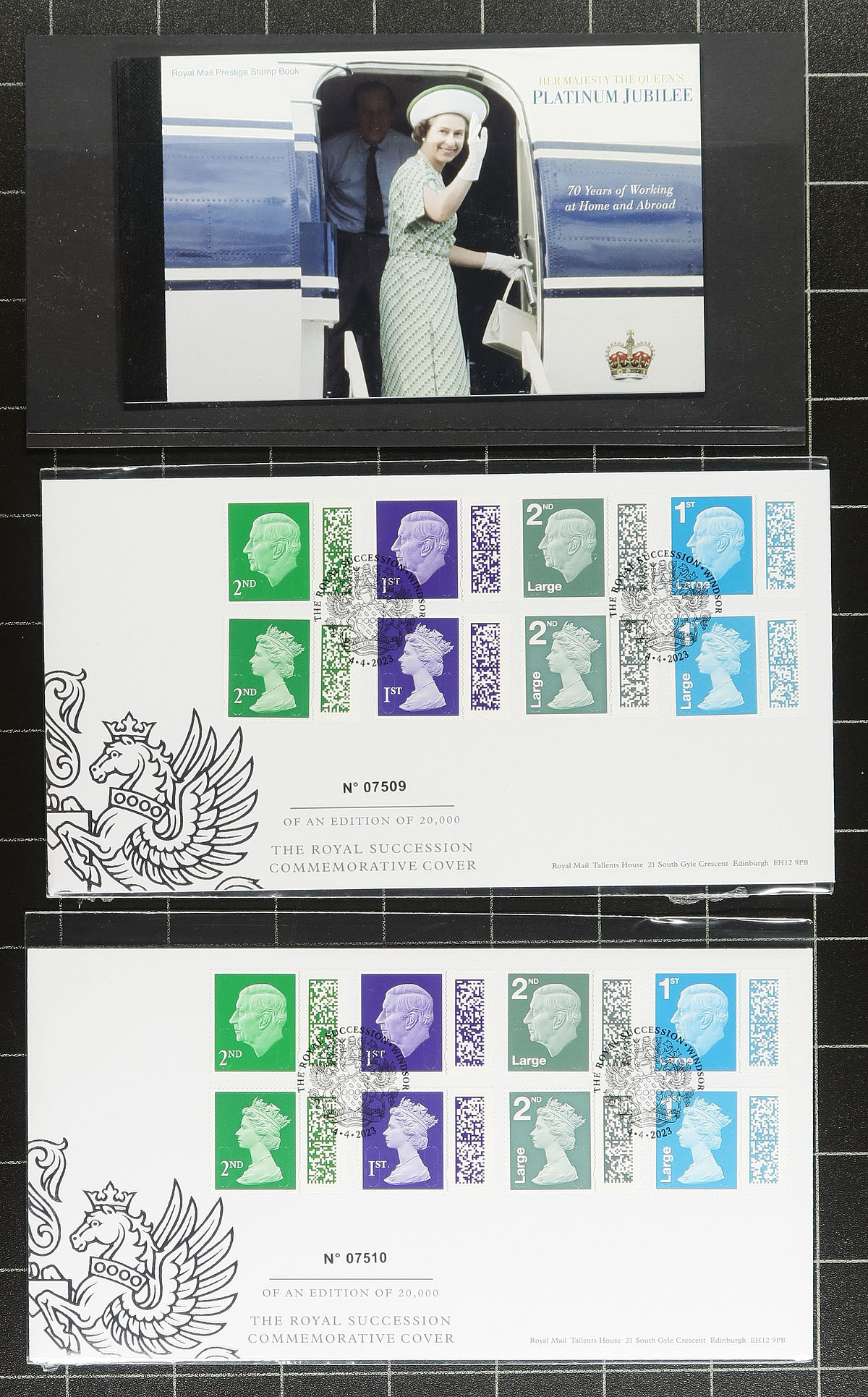 Lovely modern group of transitional Great Britain, 2022-2023, containing singles, booklet panes, and first day covers. The lot contains stamps near the end of Queen Elizabeth reign, with Scott #4194-4201 (10 strips in total), along with booklet panes of 2022 Machin stamps, and a group of King Charles III definitive issues, noting 1ST, 1st Large Letter, 2ND, and 2ND Large Letter issues. The lot rounds out with a few first day covers, including 3 numismatic covers (2 celebrating the new King Charles III Reign). Face value alone totaling £248.00 ($457.40 CDN). A super clean group for all collectors. Estimate =