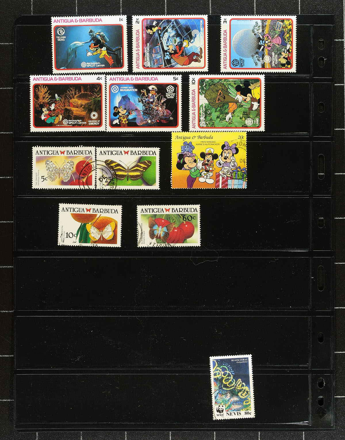 Accumulation of mint and used worldwide stamps. containing several thousands of stamps in roughly 140 Vario-style, 7-row stock pages, filling a small box. A cursory check of material indicated material generally ranging from the 1930's to the 1980's, noting mostly used stamps, with some mint never hinged singles and souvenir sheets from the 1970s onwards. Better representation from European, and Pacific areas, noting Sweden, Micronesia, Christmas Island, just to name a few, leaving better finds to the worldwide collector, the stock pages alone would retail a few hundred dollars. Estimate =