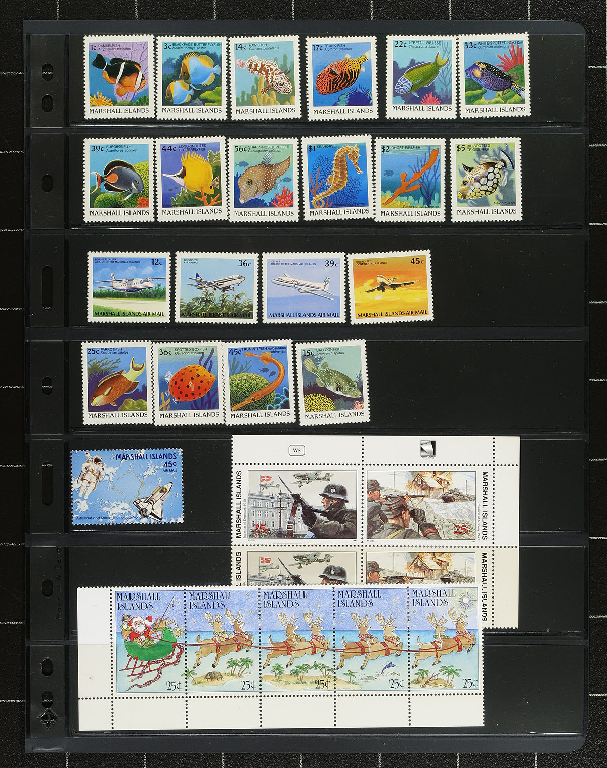 Accumulation of mint and used worldwide stamps. containing several thousands of stamps in roughly 140 Vario-style, 7-row stock pages, filling a small box. A cursory check of material indicated material generally ranging from the 1930's to the 1980's, noting mostly used stamps, with some mint never hinged singles and souvenir sheets from the 1970s onwards. Better representation from European, and Pacific areas, noting Sweden, Micronesia, Christmas Island, just to name a few, leaving better finds to the worldwide collector, the stock pages alone would retail a few hundred dollars. Estimate =
