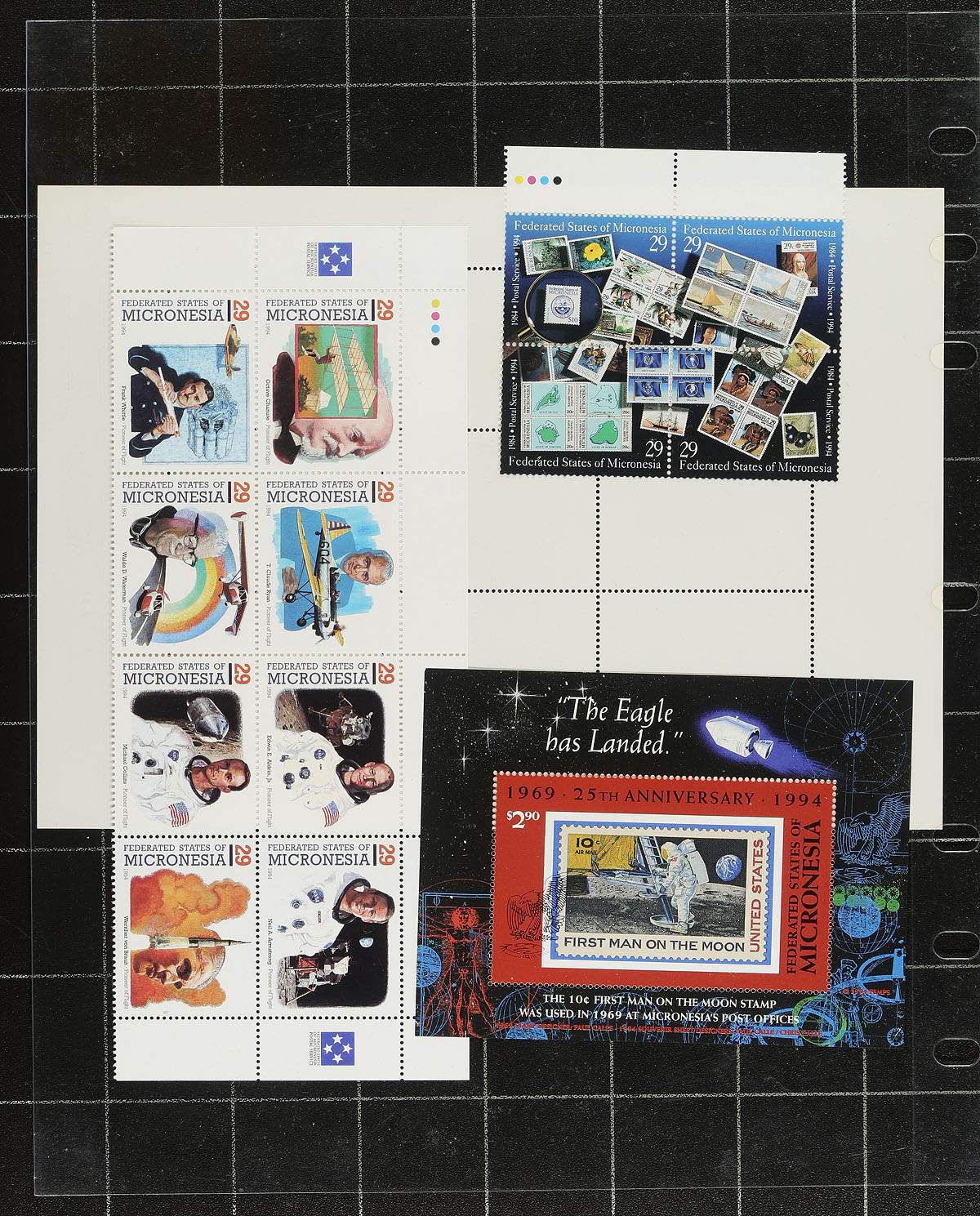 Accumulation of mint and used worldwide stamps. containing several thousands of stamps in roughly 140 Vario-style, 7-row stock pages, filling a small box. A cursory check of material indicated material generally ranging from the 1930's to the 1980's, noting mostly used stamps, with some mint never hinged singles and souvenir sheets from the 1970s onwards. Better representation from European, and Pacific areas, noting Sweden, Micronesia, Christmas Island, just to name a few, leaving better finds to the worldwide collector, the stock pages alone would retail a few hundred dollars. Estimate =