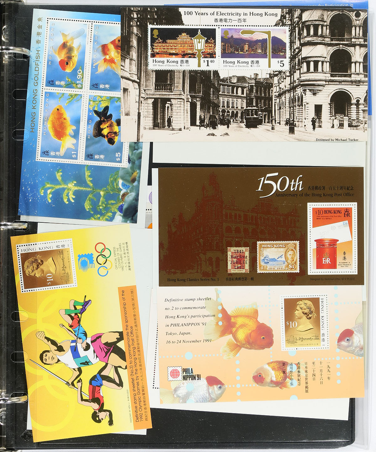 Large accumulation of many thousands of primarily used worldwide stamps in several stockbooks and stock pages housed in a few binders. A cursory check indicated material generally ranging from 1880's to the 1990's, with better representation from Australia, New Zealand (including several mint singles and a few souvenir sheets), Hong Kong (several never hinged sets and souvenir sheets from the 1990's), Canada (several stock pages in a binder), Japan (stockbook of used issues, owner's catalogue value over $400), along with Korea, United States, European and Latin America countries, and more. A nice winter project with possible finds to the dedicated collector, a few faults to be expected with a few of the early issues, overall fine to very fine. Estimate =