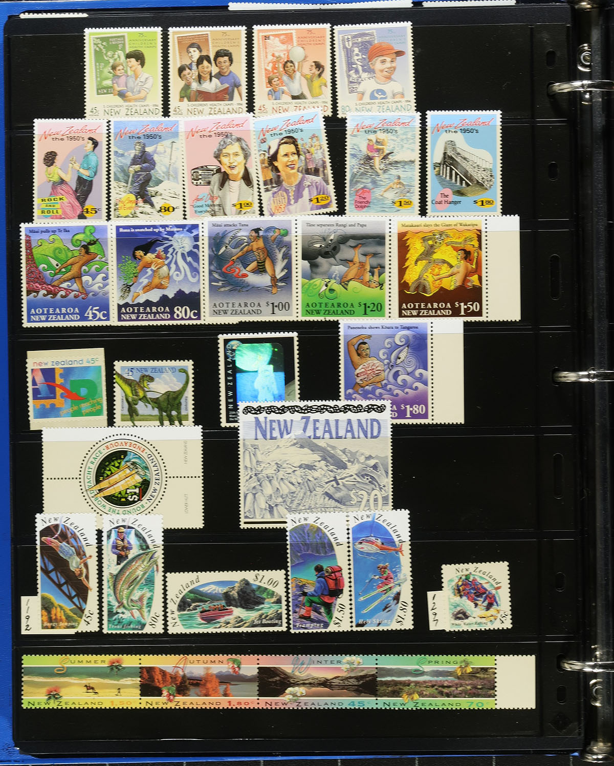 Large accumulation of many thousands of primarily used worldwide stamps in several stockbooks and stock pages housed in a few binders. A cursory check indicated material generally ranging from 1880's to the 1990's, with better representation from Australia, New Zealand (including several mint singles and a few souvenir sheets), Hong Kong (several never hinged sets and souvenir sheets from the 1990's), Canada (several stock pages in a binder), Japan (stockbook of used issues, owner's catalogue value over $400), along with Korea, United States, European and Latin America countries, and more. A nice winter project with possible finds to the dedicated collector, a few faults to be expected with a few of the early issues, overall fine to very fine. Estimate =