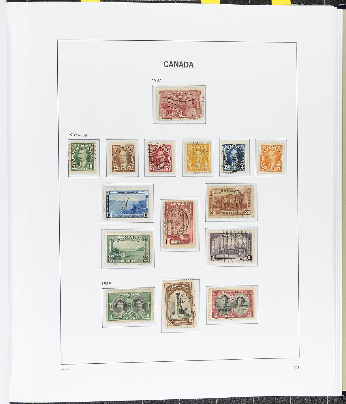 Attractive collection of mint and used Canada in 4 hingeless DAVO albums with slipcases, 1859-1992. The collection begins with used material up to the 1950's, noting Scott #s 14 (x2), 15 (x2), 17-20, a few Large Queens (1/2c, 15c (x2)), 20c and 50c Widow Weeds, along with complete sets of Leafs, Edwards, Quebecs, Admirals, Scrolls, right up to the Peace issues, along with a selection of "back of the book" material. The collection continues with a mix of mint and used material up to the early 1990's (empty pages after 1992, with hingeless pages to 2006 and additional pages for souvenir sheets and booklets). A better than average start to a great Canada collection, in albums that currently retail multiple hundreds of dollars. We note a few faults with a few early issues, and a few stamps in the wrong spots, otherwise a very nice lot with the albums alone having an original cost of several hundred dollars. Estimate =