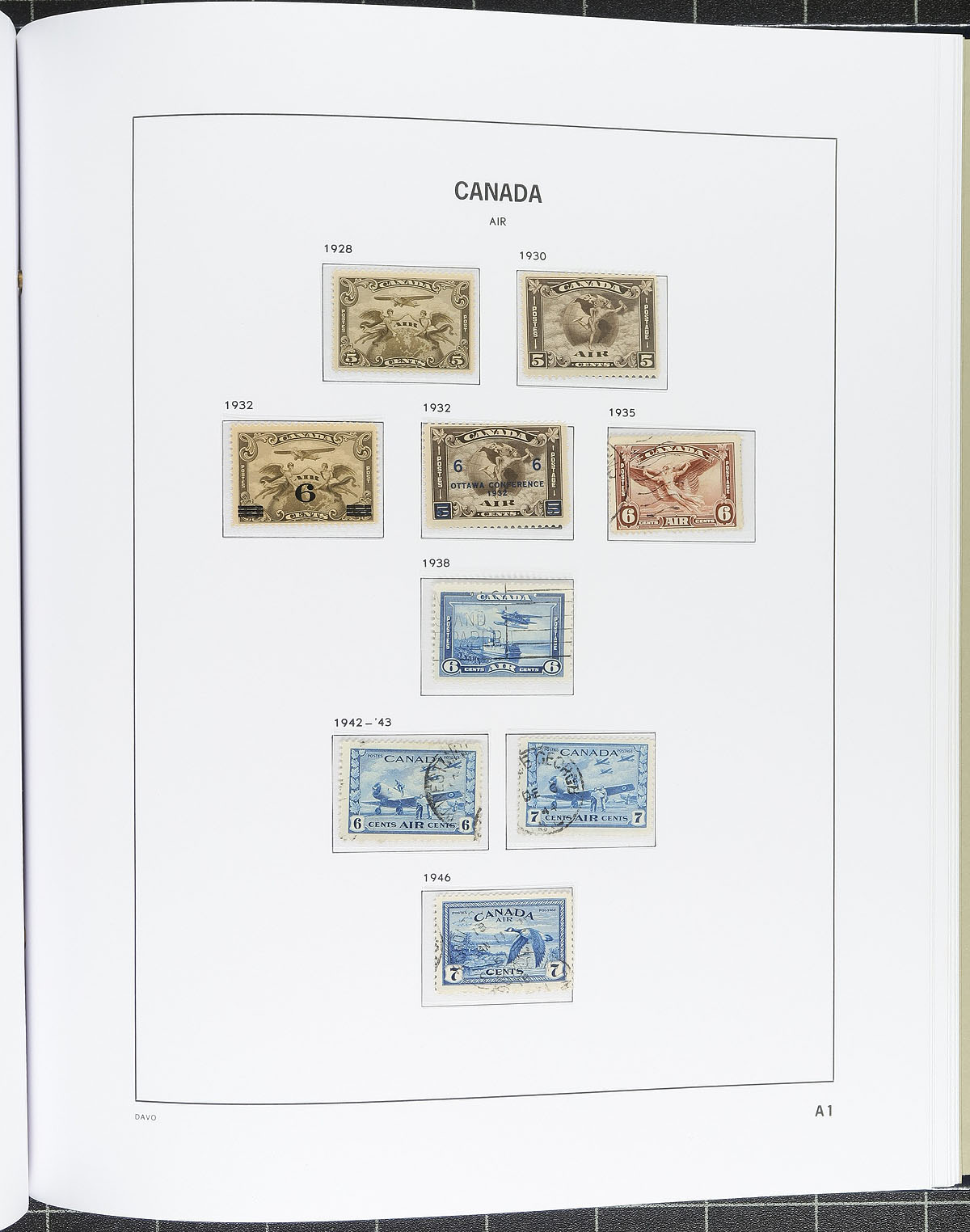 Attractive collection of mint and used Canada in 4 hingeless DAVO albums with slipcases, 1859-1992. The collection begins with used material up to the 1950's, noting Scott #s 14 (x2), 15 (x2), 17-20, a few Large Queens (1/2c, 15c (x2)), 20c and 50c Widow Weeds, along with complete sets of Leafs, Edwards, Quebecs, Admirals, Scrolls, right up to the Peace issues, along with a selection of "back of the book" material. The collection continues with a mix of mint and used material up to the early 1990's (empty pages after 1992, with hingeless pages to 2006 and additional pages for souvenir sheets and booklets). A better than average start to a great Canada collection, in albums that currently retail multiple hundreds of dollars. We note a few faults with a few early issues, and a few stamps in the wrong spots, otherwise a very nice lot with the albums alone having an original cost of several hundred dollars. Estimate =