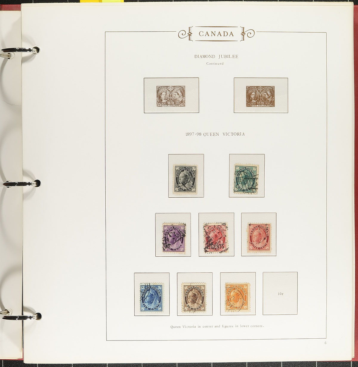 Nice starter collection of used Canada in 3 hingeless Darnell albums, 1859-1994. The collection begins with used issues with Scott #s 14-15, 18, 20, 25, 27-28, 30 (x2), Small Queens (x32, including 10c (x2), 20c and 50c Widow Weeds), complete set of Edwards, along, with partial sets of Leafs, Numerals, Quebecs, Scrolls (includes 50c Bluenose), onwards, with a few mint items scattered within. The collection essentially ends in 1983, with pages up to 1994, along with additional pages for Conservation stamps. A nice start to a Canada collection in three lovely albums that retail at least a few hundred dollars. A few faults with a few of the early stamps, overall fine to very fine. Estimate =