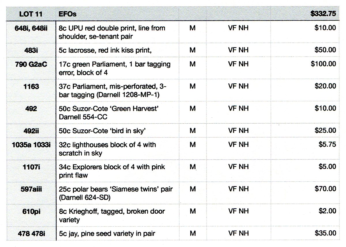 QEII "EFO" (Errors, Freaks and Oddities) group of mint Never Hinged singles, pairs and blocks, all neatly arranged on a single stockpage. Includes constant varieties, "fly-specs", tagging errors and a misperforation. See the owner's inventory list which used a combination of Unitrade / Darnell and Adminware catalogue values. Owner's catalogue value =