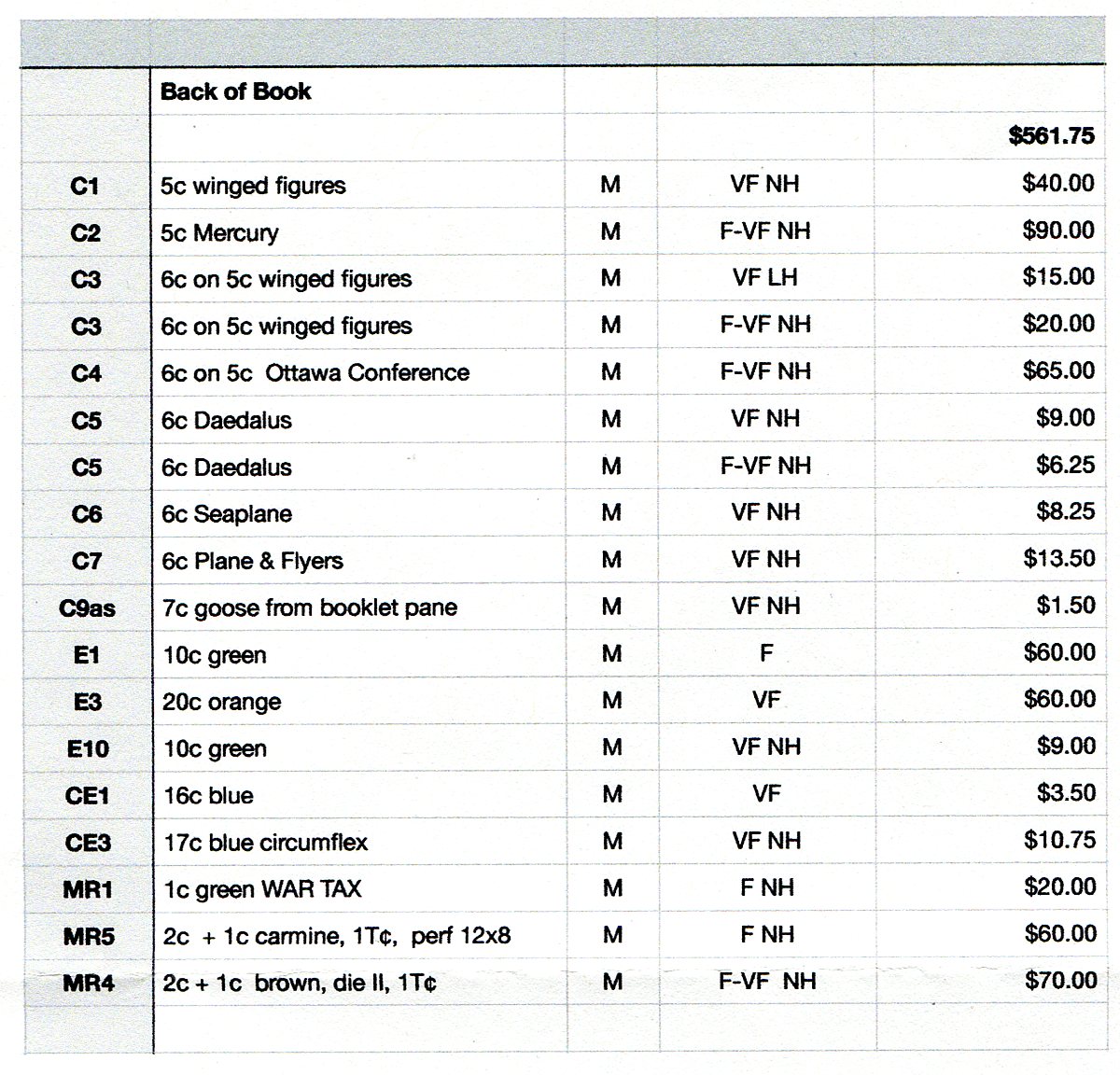 "Back of the Book" mint (mostly Never Hinged) holding. A total of 18 stamps including Airmail, Special Delivery Airmail, Special Delivery and War Tax. Some very nice individual stamps here. See the owner's inventory sheet for a breakdown of the grading / gum / printings etc. Owner's Unitrade =