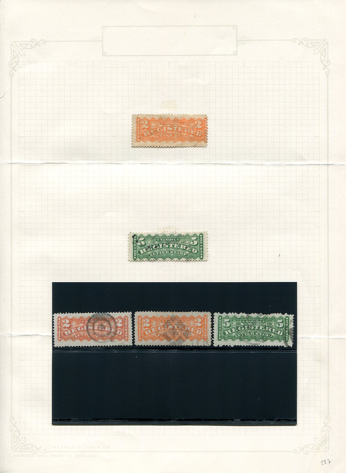 Group of used Registration Stamps, with 14x 2c (with shades) and 13x 5c (with shades), which includes an example of #F1b (rose carmine), F1d (perf 12x11.5) and F2b (yellow green). 2025 Scott US$382.00 =