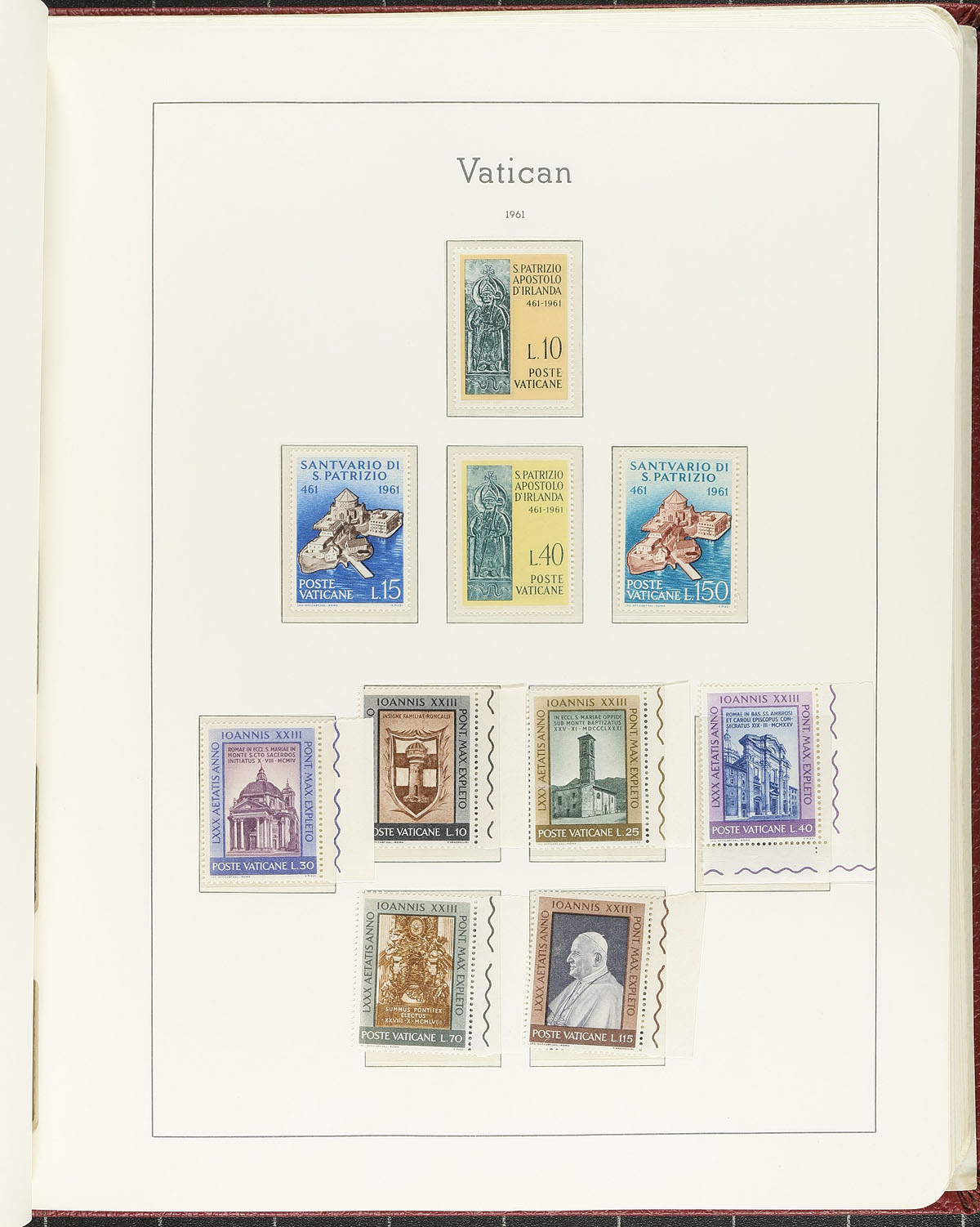 Attractive old-style Lighthouse hingeless album, with pages from the beginning (1929) up to 1983. While the mint stamps are a bit sparse in beginning section, sets start to appear during the WWII period, with 1954-1983 being largely complete. A spot check showed mostly Never Hinged, especially in the latter portion. A nice chance to get a solid "foot in the door" mint collection, in a premium album. Estimate =
