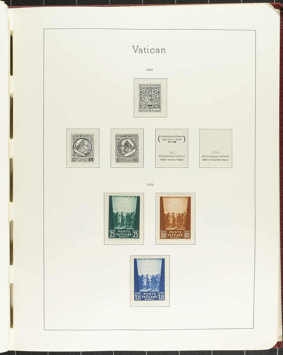 Attractive old-style Lighthouse hingeless album, with pages from the beginning (1929) up to 1983. While the mint stamps are a bit sparse in beginning section, sets start to appear during the WWII period, with 1954-1983 being largely complete. A spot check showed mostly Never Hinged, especially in the latter portion. A nice chance to get a solid "foot in the door" mint collection, in a premium album. Estimate =