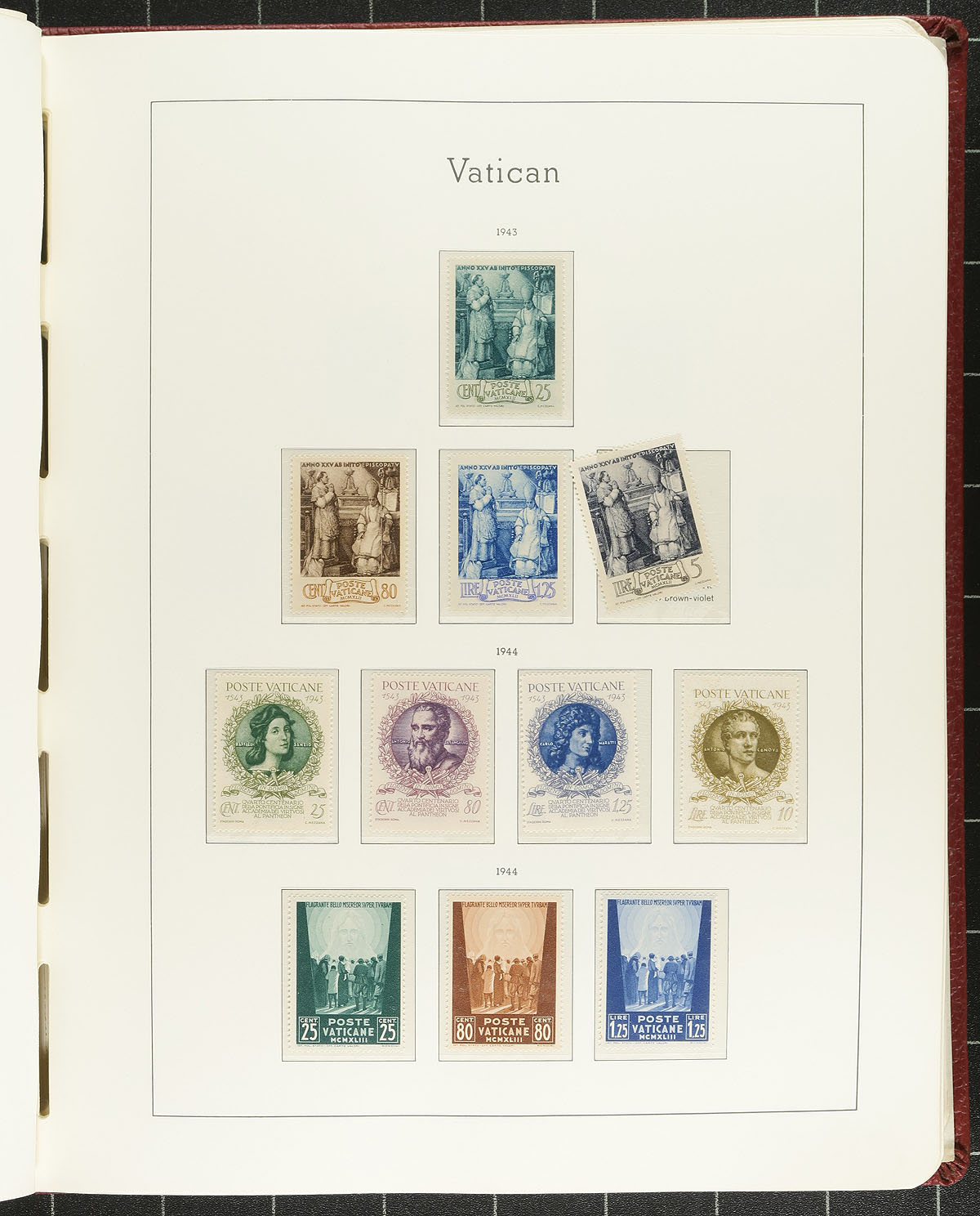 Attractive old-style Lighthouse hingeless album, with pages from the beginning (1929) up to 1983. While the mint stamps are a bit sparse in beginning section, sets start to appear during the WWII period, with 1954-1983 being largely complete. A spot check showed mostly Never Hinged, especially in the latter portion. A nice chance to get a solid "foot in the door" mint collection, in a premium album. Estimate =