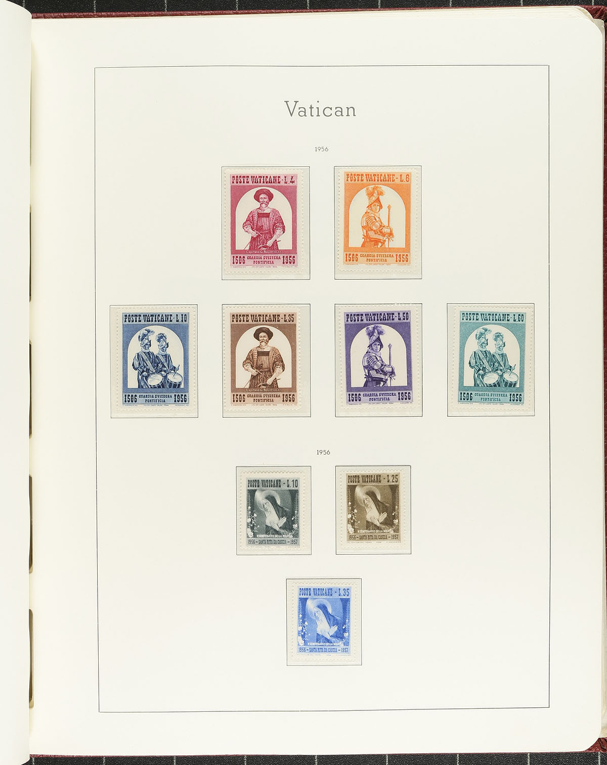 Attractive old-style Lighthouse hingeless album, with pages from the beginning (1929) up to 1983. While the mint stamps are a bit sparse in beginning section, sets start to appear during the WWII period, with 1954-1983 being largely complete. A spot check showed mostly Never Hinged, especially in the latter portion. A nice chance to get a solid "foot in the door" mint collection, in a premium album. Estimate =