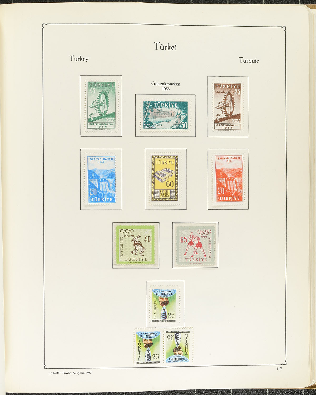A somewhat battered on the outside, but attractive on the inside "KA-BE" album, with collection of mint/used that runs up to the mid 1970's. The pre-1950 is a mix of mint and used, and then fairly good run of mint never hinged from 1960-1977. A nice collection to expand on, or be amalgamated with an existing holding. Estimate =