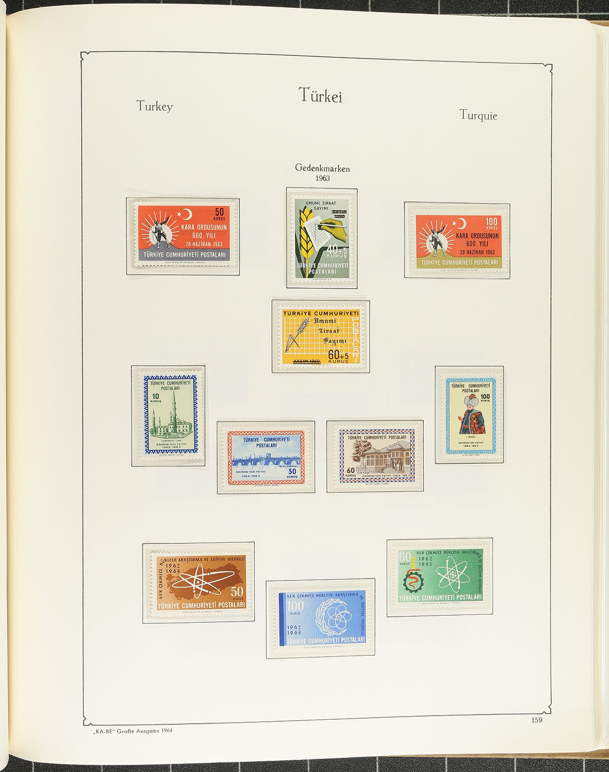 A somewhat battered on the outside, but attractive on the inside "KA-BE" album, with collection of mint/used that runs up to the mid 1970's. The pre-1950 is a mix of mint and used, and then fairly good run of mint never hinged from 1960-1977. A nice collection to expand on, or be amalgamated with an existing holding. Estimate =