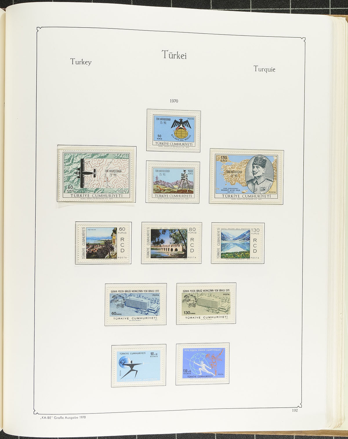 A somewhat battered on the outside, but attractive on the inside "KA-BE" album, with collection of mint/used that runs up to the mid 1970's. The pre-1950 is a mix of mint and used, and then fairly good run of mint never hinged from 1960-1977. A nice collection to expand on, or be amalgamated with an existing holding. Estimate =