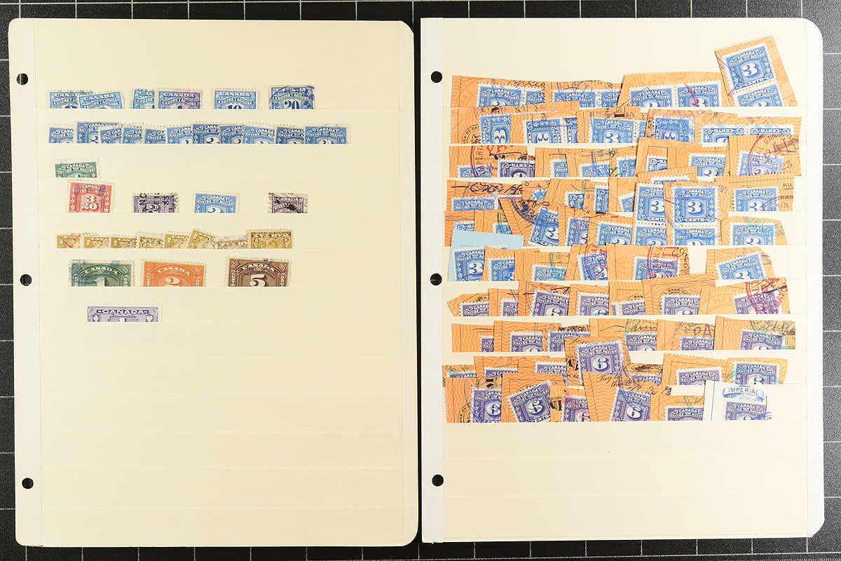 A small 3-ring binder, containing a wide-ride of old-time stockpages with Revenue / Fiscal stamps from Great Britain, Italy, Austria, Ceylon, Denmark, Norway, India, USA, Isreal, France and Canada (and many more). A very intriguing holding, that should prove rewarding once sorted out. Of particular note is the British Consular stamps, which were used on documents on countries around the world (we noted markings from Mexico and Siam, just to name a couple). Estimate =