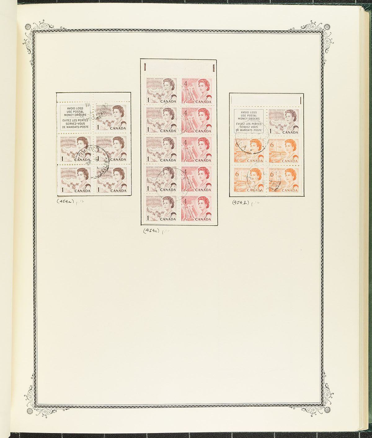 A classic Scott Specialty Series "Canada" album, with pages to 1978 including "back of the book" and Newfoundland. Partially filled with used, starting in the QV period and including better George V/VI and QEII. Of particular note is a complete used George V Admiral set, and QEII used coil pairs and booklet panes. An excellent book to be added to, with lots of spots that could easily be filled, bringing that old-time album back to life. Estimate =