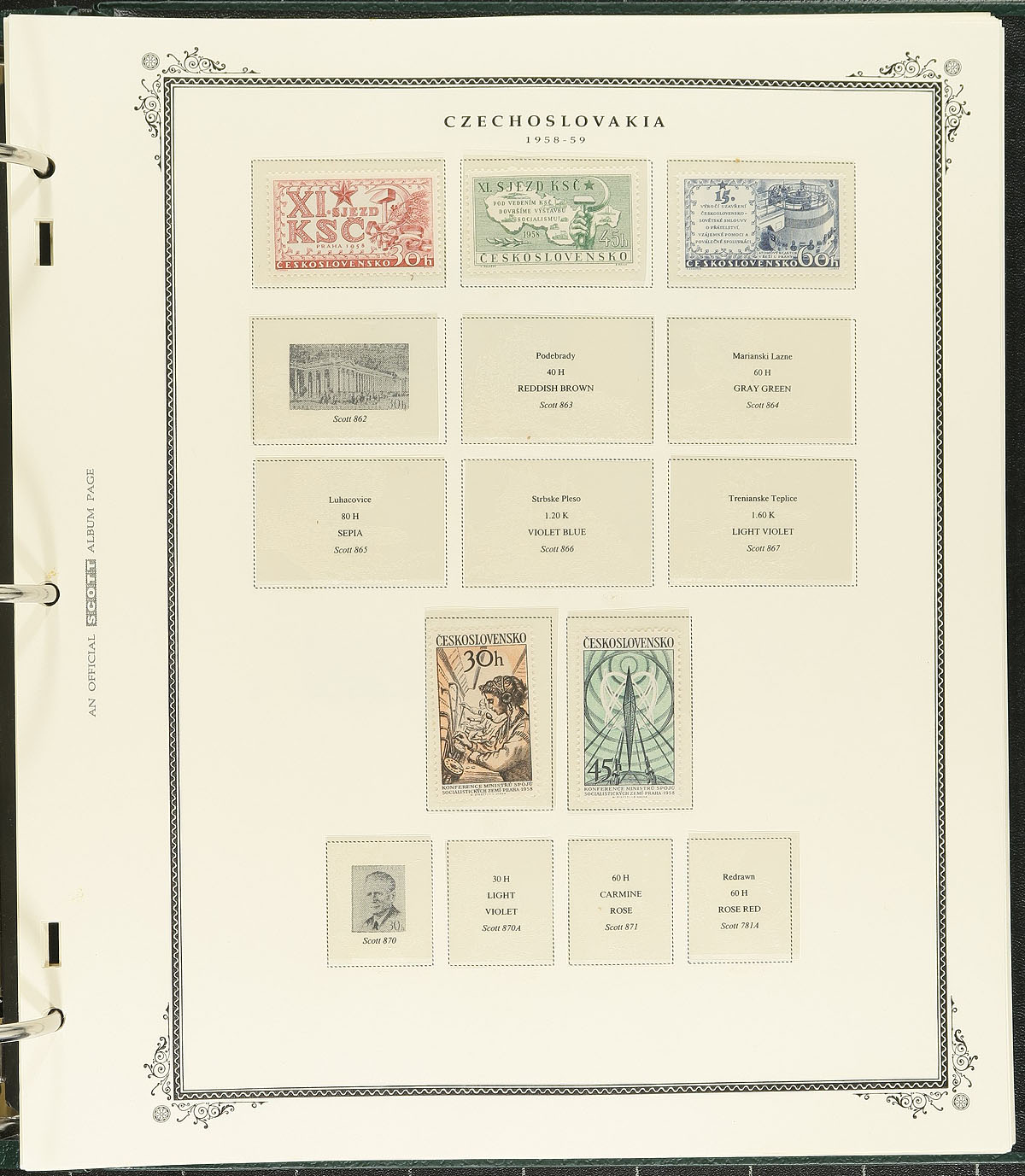 Lovely "modern" Scott Specialty Series Album (large format, 3 ring) with hingless pages from the beginning (1918) up to 1959, including "back of the book". A "hit or miss" coverage of mint issues within, which range from well-filled, to sparse. Would make an excellent collection to build upon, to make the "first 40 years" holding in a premium album. Estimate =