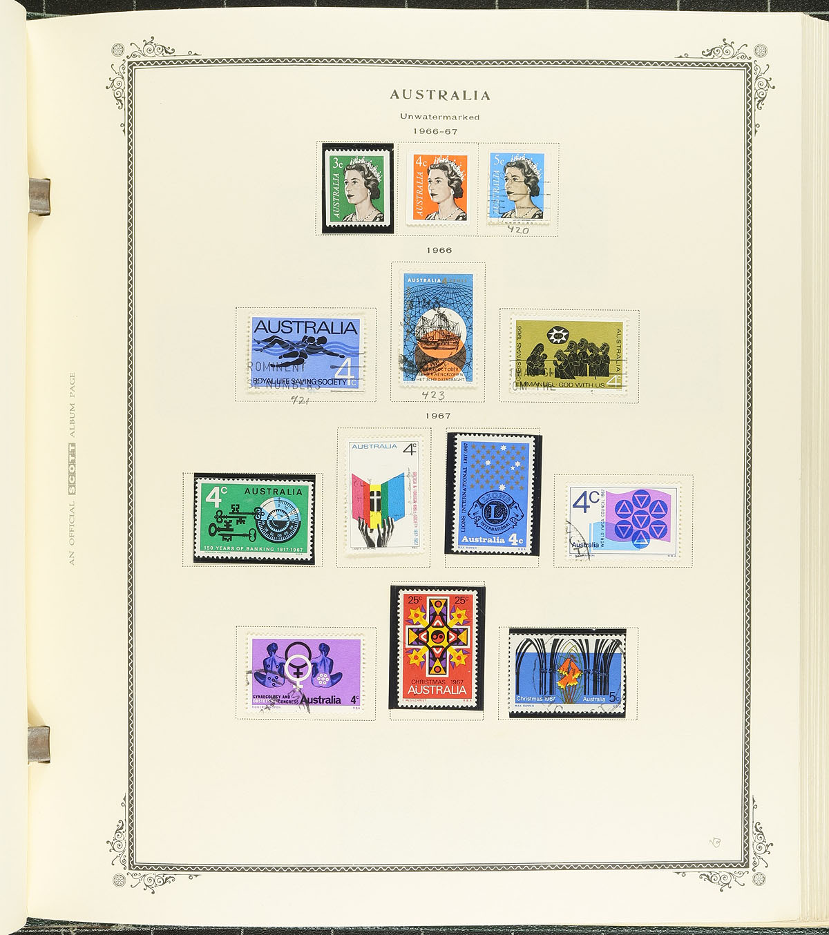 A duo of Scott Specialty Series Albums. The first (larger) album contains pages from 1913 to 2000, along with pages for all the Australian States from 1850-1912, filled with almost exclusively used and excellent coverage from 1935-1990. The second (smaller) album ("British America" on the spine), contains pages from 1913-1992 (no states) and has a good coverage of both mint and used from 1930 to the mid-1970's, sporadically thereafter. The large album in particular is in well above-average condition, and these would make excellent candidates to build upon, or amalgamate existing holdings. Estimate =