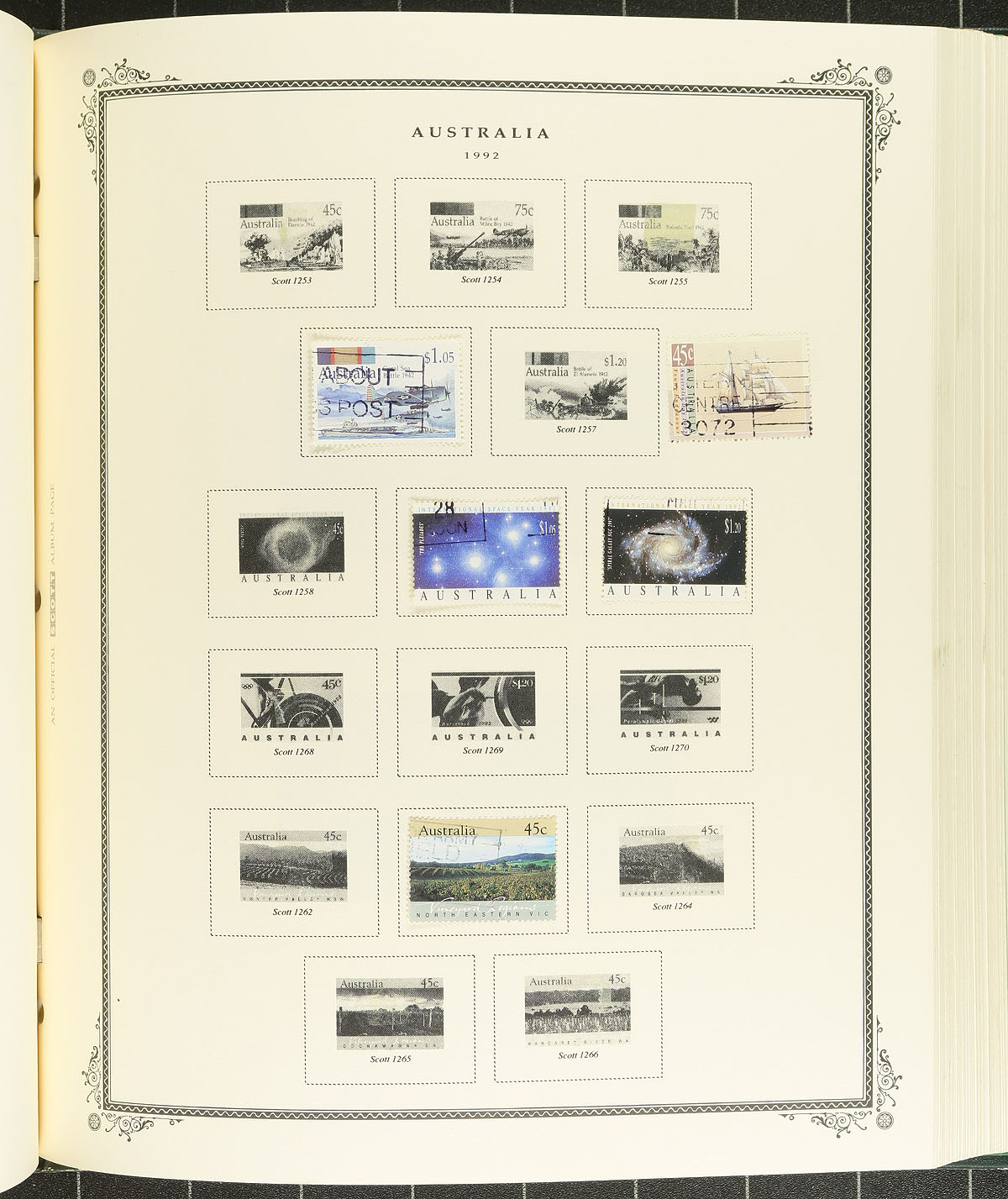 A duo of Scott Specialty Series Albums. The first (larger) album contains pages from 1913 to 2000, along with pages for all the Australian States from 1850-1912, filled with almost exclusively used and excellent coverage from 1935-1990. The second (smaller) album ("British America" on the spine), contains pages from 1913-1992 (no states) and has a good coverage of both mint and used from 1930 to the mid-1970's, sporadically thereafter. The large album in particular is in well above-average condition, and these would make excellent candidates to build upon, or amalgamate existing holdings. Estimate =