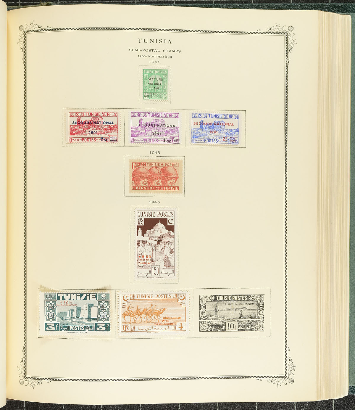 French Colonies Collection. A large offering of 5x Scott Specialty Albums, plus two additional albums of "duplicates" being a remaindered collection of French Colonies. Still thousands of stamps here, with pages (often duplicated) covering the period up to 1945, with some countries having additional pages added for stamps up to 1965. Noted both mint and used, of variable quality and some condition issues (particularly on the earlier issues). While some of the high values have been removed, there are still thousands of great stamps here to help fill your collection, or if you feel so inclined, these books could be brought back to life with a little TLC. Estimate =