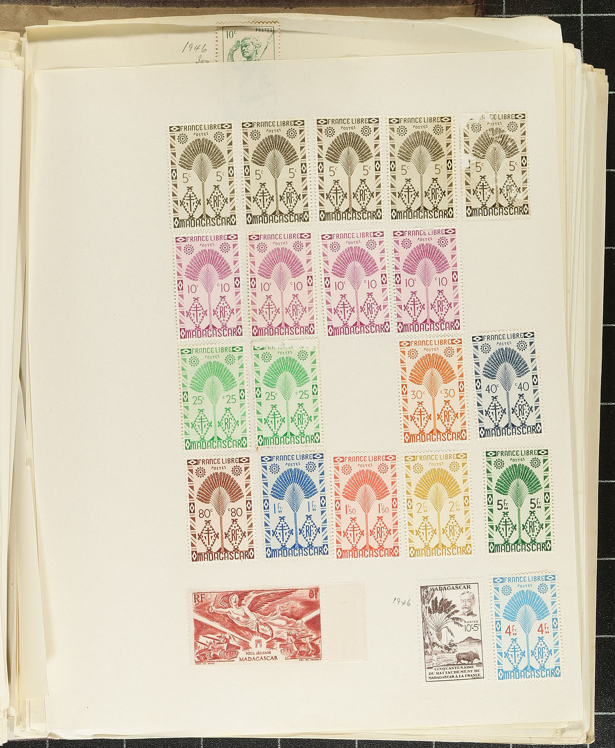 French Colonies Collection. A large offering of 5x Scott Specialty Albums, plus two additional albums of "duplicates" being a remaindered collection of French Colonies. Still thousands of stamps here, with pages (often duplicated) covering the period up to 1945, with some countries having additional pages added for stamps up to 1965. Noted both mint and used, of variable quality and some condition issues (particularly on the earlier issues). While some of the high values have been removed, there are still thousands of great stamps here to help fill your collection, or if you feel so inclined, these books could be brought back to life with a little TLC. Estimate =