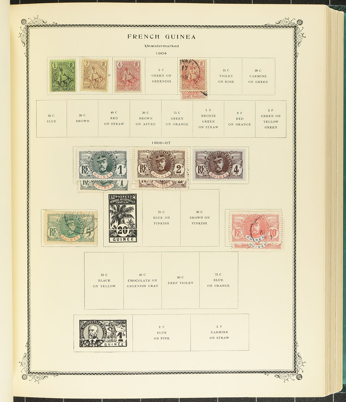 French Colonies Collection. A large offering of 5x Scott Specialty Albums, plus two additional albums of "duplicates" being a remaindered collection of French Colonies. Still thousands of stamps here, with pages (often duplicated) covering the period up to 1945, with some countries having additional pages added for stamps up to 1965. Noted both mint and used, of variable quality and some condition issues (particularly on the earlier issues). While some of the high values have been removed, there are still thousands of great stamps here to help fill your collection, or if you feel so inclined, these books could be brought back to life with a little TLC. Estimate =