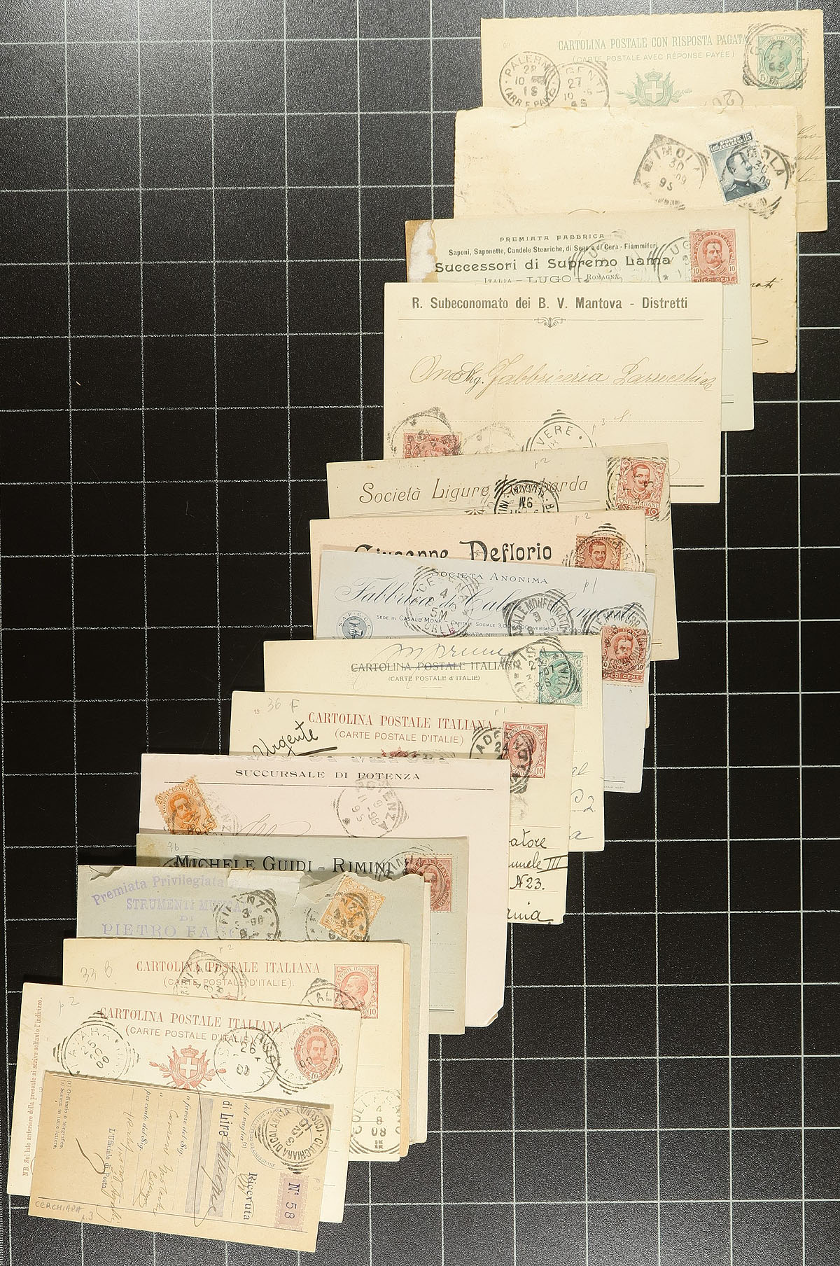 Italy Squared Circles. A lovely accumulation of 140 covers, documents and postcards, all with Squared Circle postmarks from 1890 to the early 1900's on King Umberto I and Vittorio Emanuele III issues. A huge variety of towns and regions (lots of small towns) with some being notated as either earliest or latest dates. Ex. Ted Kerzner collection. Estimate =