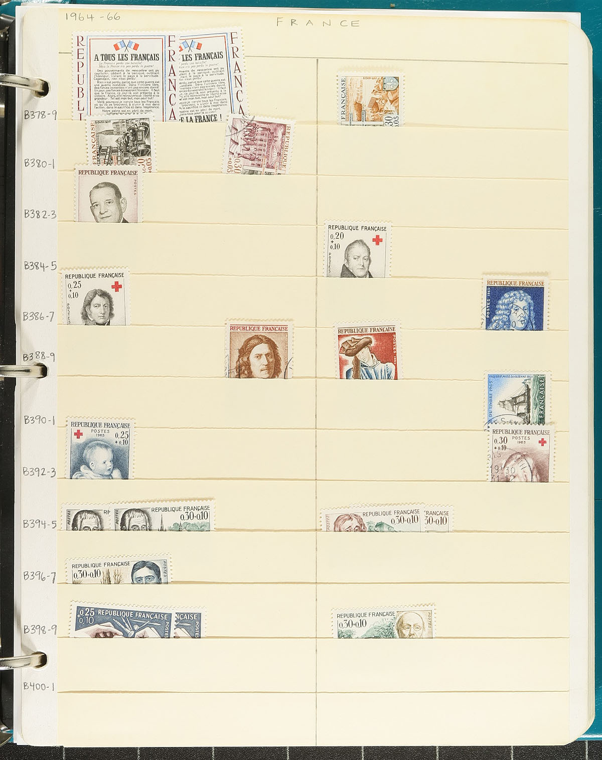 Large accumulation of a few thousand mint and used stamps, 1870's-1995, in roughly 100 manila pages housed in 3 binders, and several 102 cards and glassines. The lot is fairly organized with stamps in the manila pages identified by Scott numbers generally ranging from #78/2451, including back of the book material, with some pages sporadically filled, we encountered a few sets, and never hinged souvenir sheets and sheetlets. The remaining material is loose in a box, presumably to fill out the manila pages, noting a nice mixture of mint and used material. A nice lot for the France or worldwide collector, with possible finds within, overall fine to very fine. Estimate =