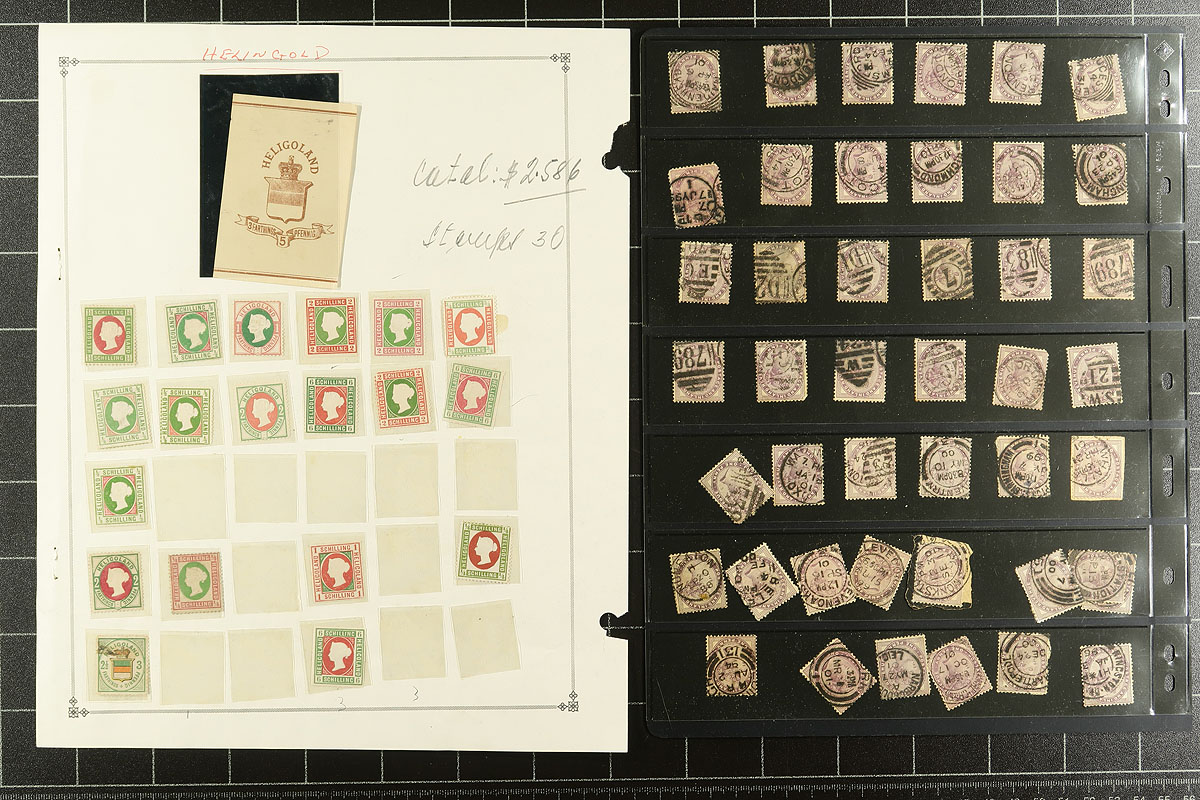 Large accumulation of thousands of primarily used stamps in a few stockbooks and on album pages, filling a bankers box. A cursory look at material indicated better representation from China, Australia, Hong Kong, Netherlands, and bits and pieces of what seemingly appears to be part collections from worldwide countries, generally ranging from the 1880's to the 1980's. Probable finds for the dedicated collector, with a few selected pages to give a taste, overall fine to very fine. Estimate =