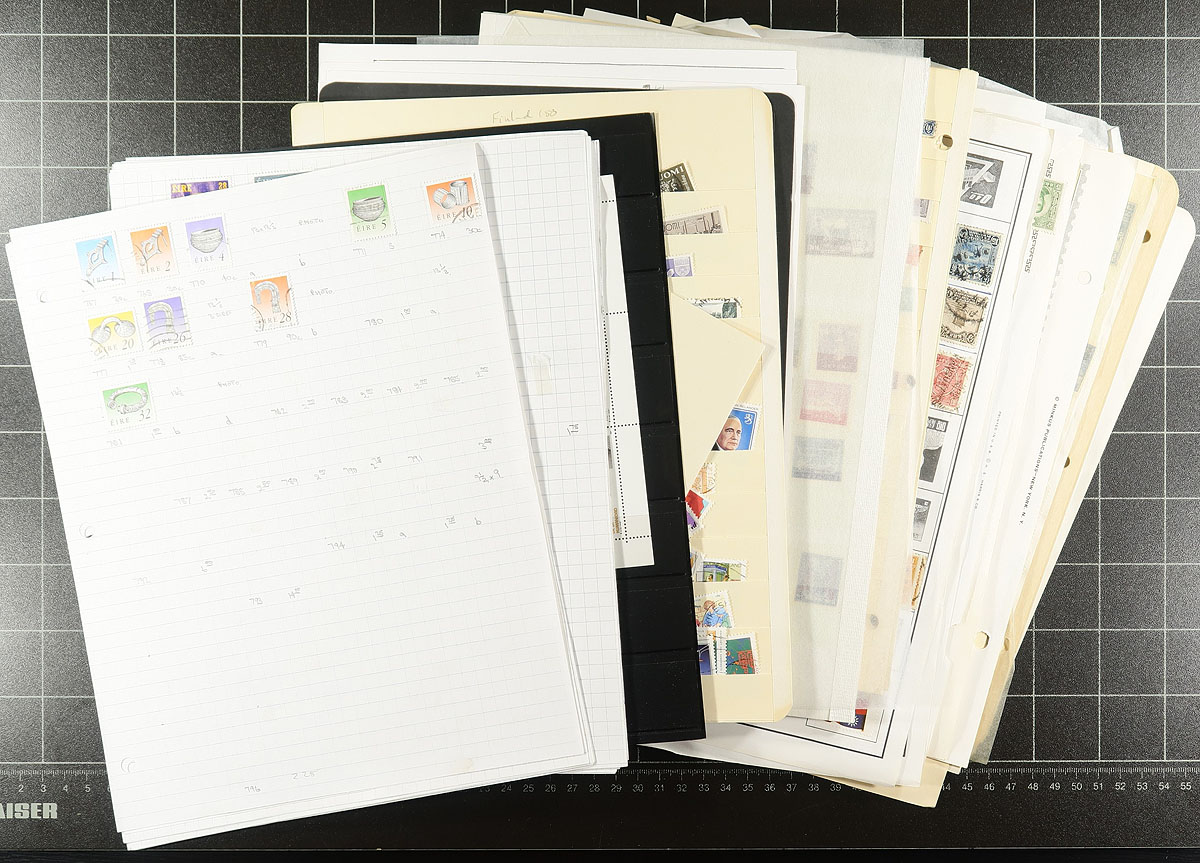 Large accumulation of thousands of primarily used stamps in a few stockbooks and on album pages, filling a bankers box. A cursory look at material indicated better representation from China, Australia, Hong Kong, Netherlands, and bits and pieces of what seemingly appears to be part collections from worldwide countries, generally ranging from the 1880's to the 1980's. Probable finds for the dedicated collector, with a few selected pages to give a taste, overall fine to very fine. Estimate =