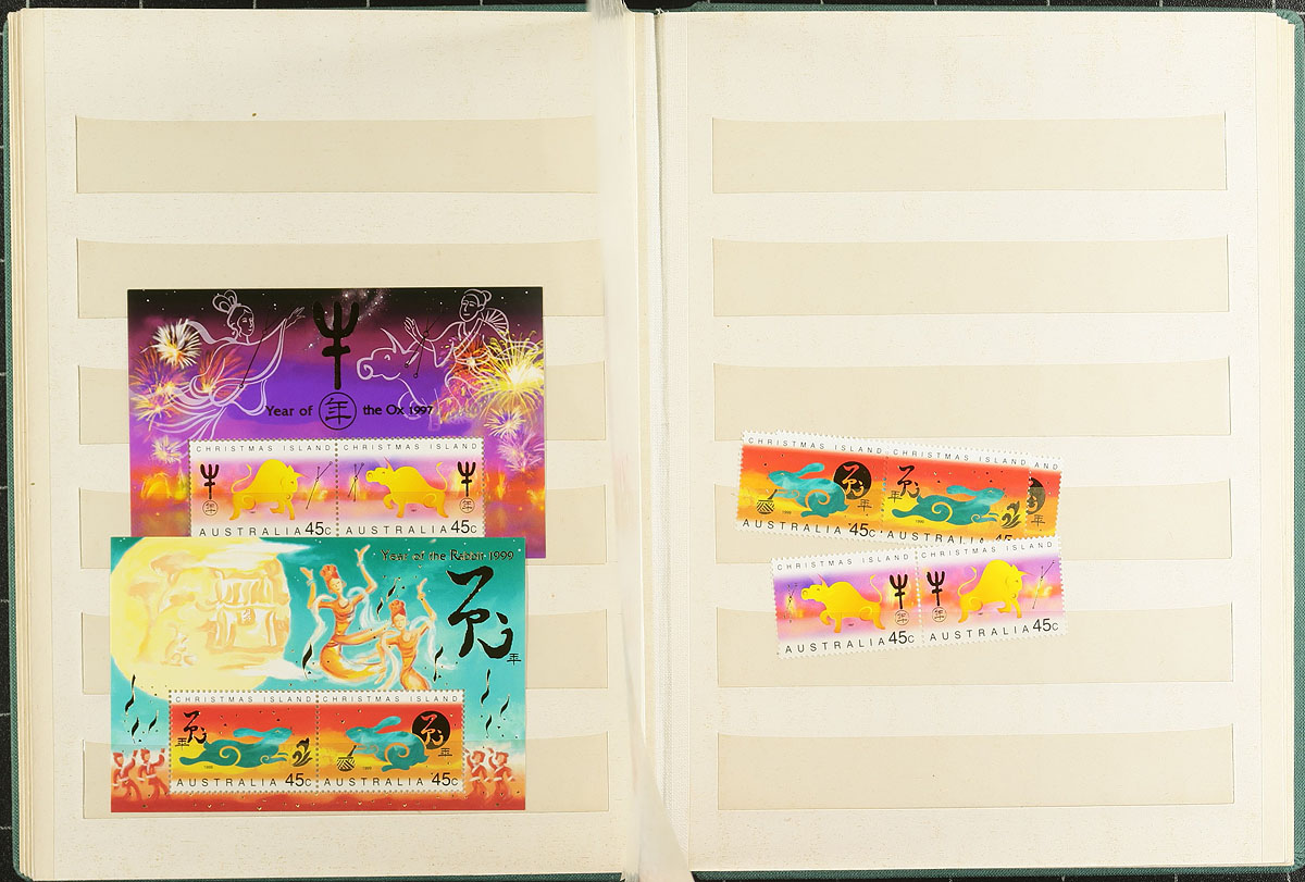 Large accumulation of thousands of primarily used stamps in a few stockbooks and on album pages, filling a bankers box. A cursory look at material indicated better representation from China, Australia, Hong Kong, Netherlands, and bits and pieces of what seemingly appears to be part collections from worldwide countries, generally ranging from the 1880's to the 1980's. Probable finds for the dedicated collector, with a few selected pages to give a taste, overall fine to very fine. Estimate =