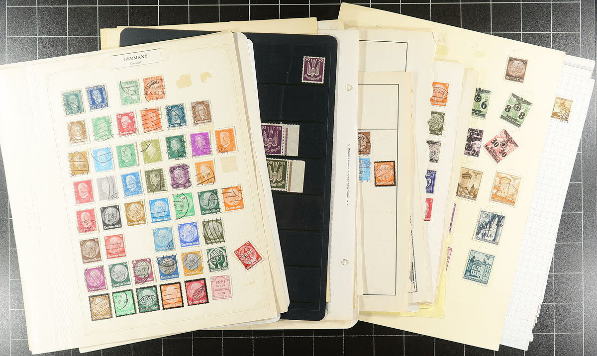 Accumulation of mint and used Germany, 1880's-1940's, containing a few thousand stamps in roughly 100 album or stock pages. A spot check indicated used early material, mint and used inflation era issues, mint and used semi-postals, and smaller selections of occupations, officials, and much more, including a few souvenir sheets, with some material possible on both sides of the given range. Some faults to be expected, still a nice lot for the Germany or worldwide collector. Estimate =