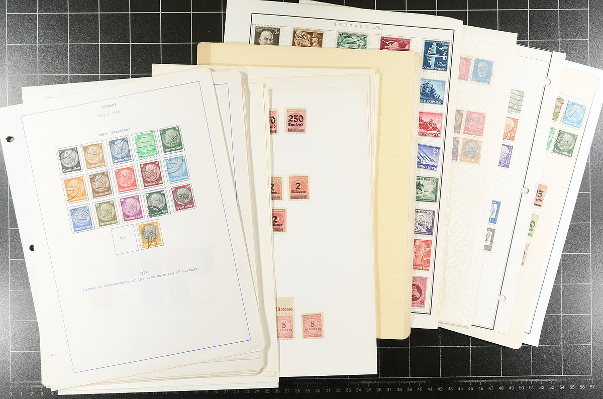 Accumulation of mint and used Germany, 1880's-1940's, containing a few thousand stamps in roughly 100 album or stock pages. A spot check indicated used early material, mint and used inflation era issues, mint and used semi-postals, and smaller selections of occupations, officials, and much more, including a few souvenir sheets, with some material possible on both sides of the given range. Some faults to be expected, still a nice lot for the Germany or worldwide collector. Estimate =