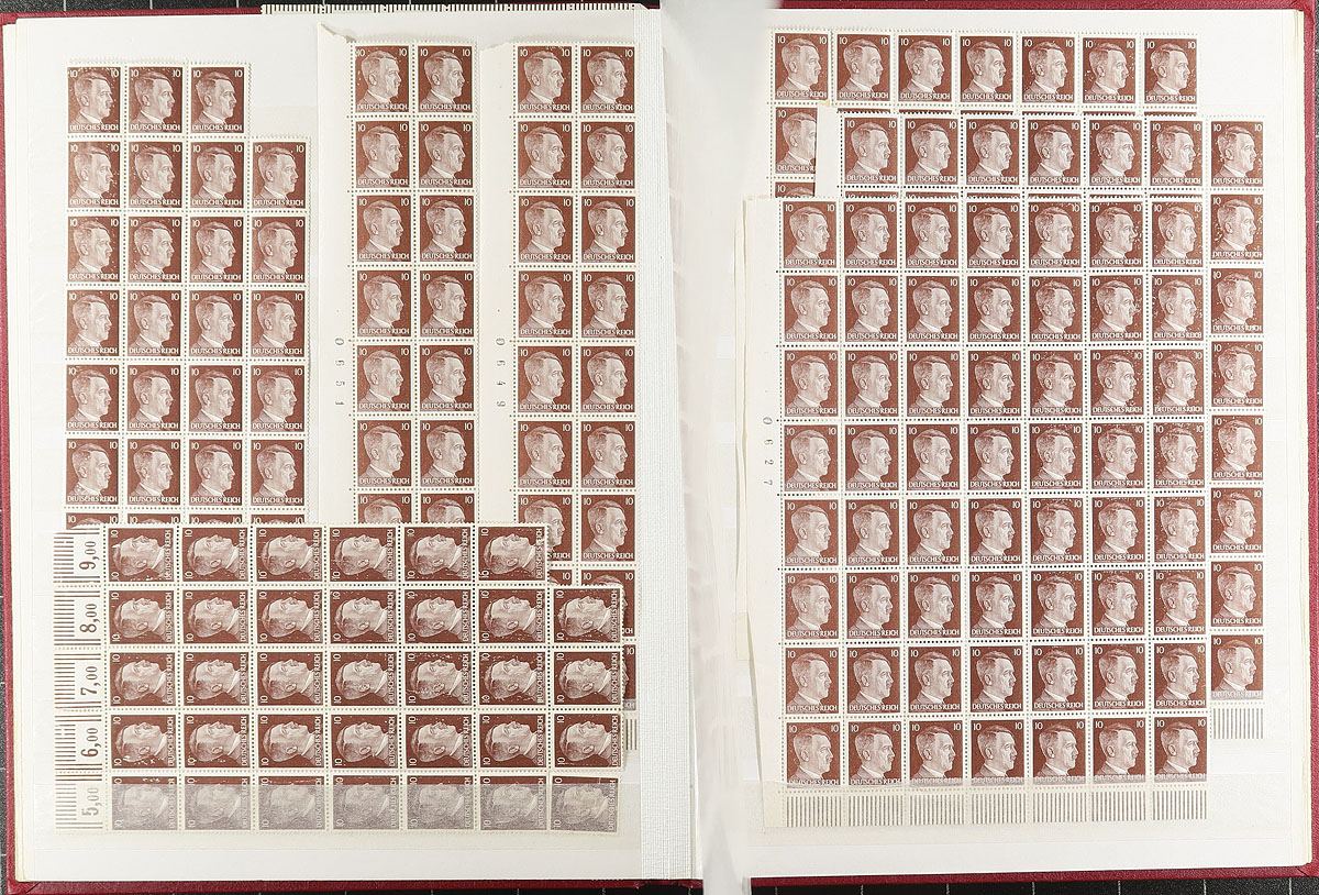 Accumulation of mint and used Germany, 1880's-1940's, containing a few thousand stamps in roughly 100 album or stock pages. A spot check indicated used early material, mint and used inflation era issues, mint and used semi-postals, and smaller selections of occupations, officials, and much more, including a few souvenir sheets, with some material possible on both sides of the given range. Some faults to be expected, still a nice lot for the Germany or worldwide collector. Estimate =