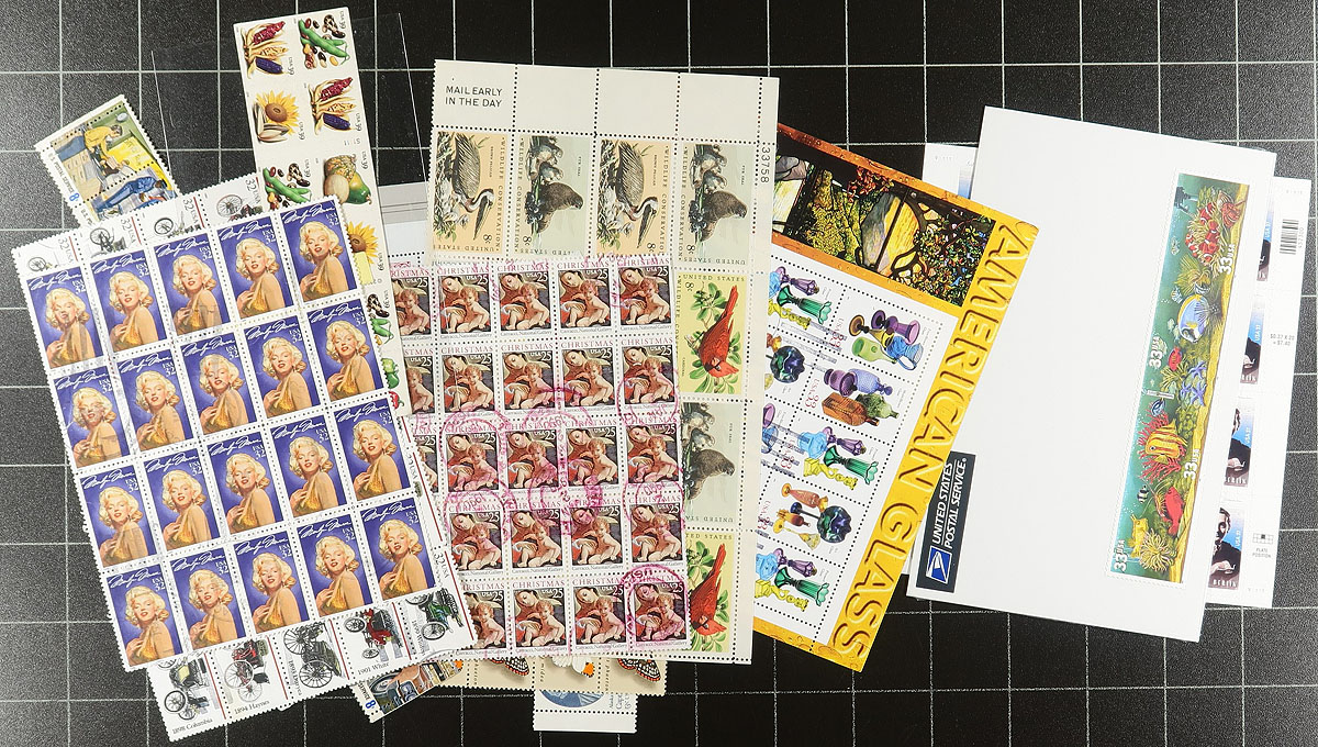 Modern Postage Medley. A wonderful assortment of 1970's to 1990's mint sheets & multiples, including the sought-after 1994 issued "Legends of the West" sheet, with Bill Pickett error stamps (along with matching corrected sheet). Also includes a smattering of used modern sheets. The perfect "postage plus" lot for any collector or dealer. Face value alone is US$316.35 ($442.65 CDN), with the owners catalogue value over US$740.00. Estimate =
