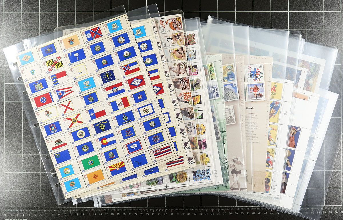 Modern Postage Medley. A wonderful assortment of 1970's to 1990's mint sheets & multiples, including the sought-after 1994 issued "Legends of the West" sheet, with Bill Pickett error stamps (along with matching corrected sheet). Also includes a smattering of used modern sheets. The perfect "postage plus" lot for any collector or dealer. Face value alone is US$316.35 ($442.65 CDN), with the owners catalogue value over US$740.00. Estimate =