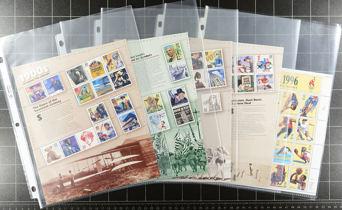 Modern Postage Medley. A wonderful assortment of 1970's to 1990's mint sheets & multiples, including the sought-after 1994 issued "Legends of the West" sheet, with Bill Pickett error stamps (along with matching corrected sheet). Also includes a smattering of used modern sheets. The perfect "postage plus" lot for any collector or dealer. Face value alone is US$316.35 ($442.65 CDN), with the owners catalogue value over US$740.00. Estimate =