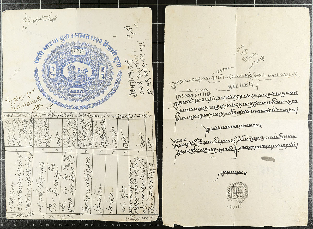 Old-time HOARD of India States Revenue Stamps. Held in small old-springback album and a couple of bulging collector made booklets, with several hundred stamps in total. A fascinating group, from a variety of states and usages. An opportunity like this to pick up and old-time holding does not happen often. Estimate =