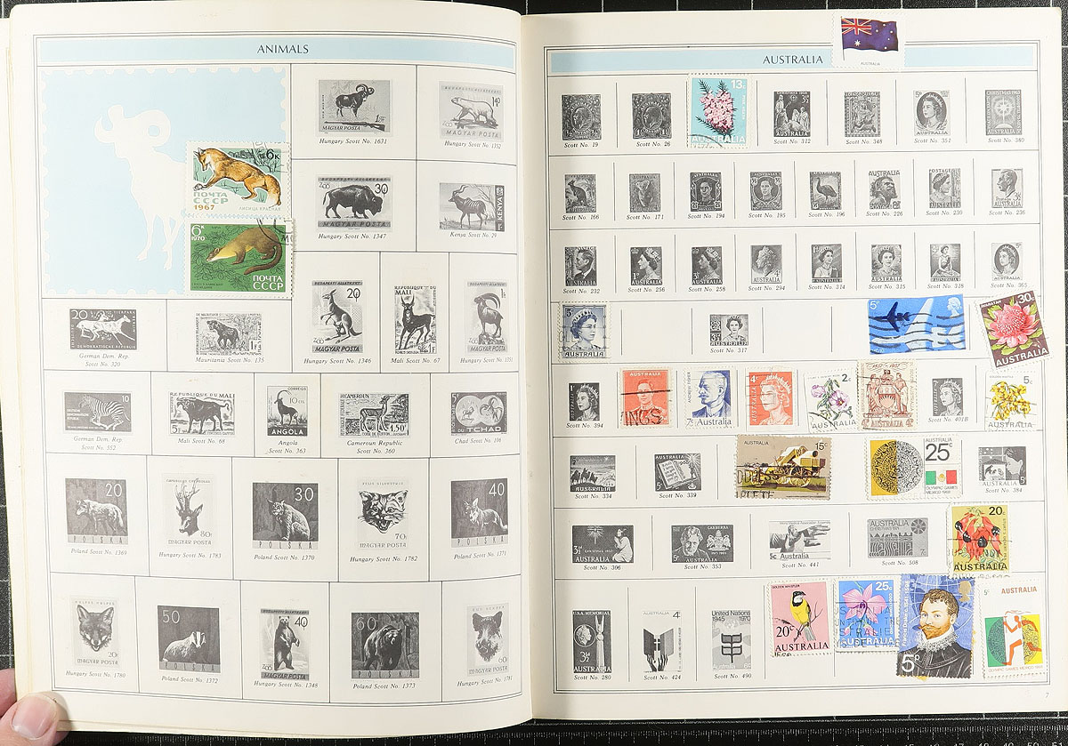 Balance of consignment offering, including (in no particular order). 1) A "Scott" Canada Album, with pages to 1982 and a range of mint/used, including a bit of "back of the book" and Provinces. 2) Three Scott "Junior" albums with Worldwide (2) and Canada (1), each with a smattering of mint/used. 3) A "Turkey Dinner" padded album, with a few dozen 1970's mint Canada issues. 4) Canada 1937 / 1939 Royal Visit, large multiples including plate blocks, hinged on pages. 5) Canada "Ships of Canada" Thematic Collection. 6) Canada Annual Collections for 1978, then 1981-1989 inclusive (face value alone $164.42, Unitrade $430.00). Estimate =
