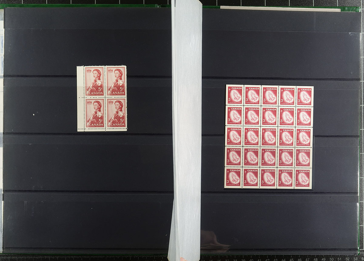 Nice grouping of primarily never hinged material in a full 32 page, 4 line stockbook, containing a nice array of items. The group generally ranges from the 1940's to the 1970's, including many plate blocks (including semi-postals and postage dues), coil pairs, booklets (including a few Conservation booklets), mini panes, precancels, along with used varieties as noted by the owner in 102 cards. A spot check indicated some items cataloguing from $5 to $10 each, making this a very useful lot, with all pages photographed online. Should be worth our estimate. Estimate =