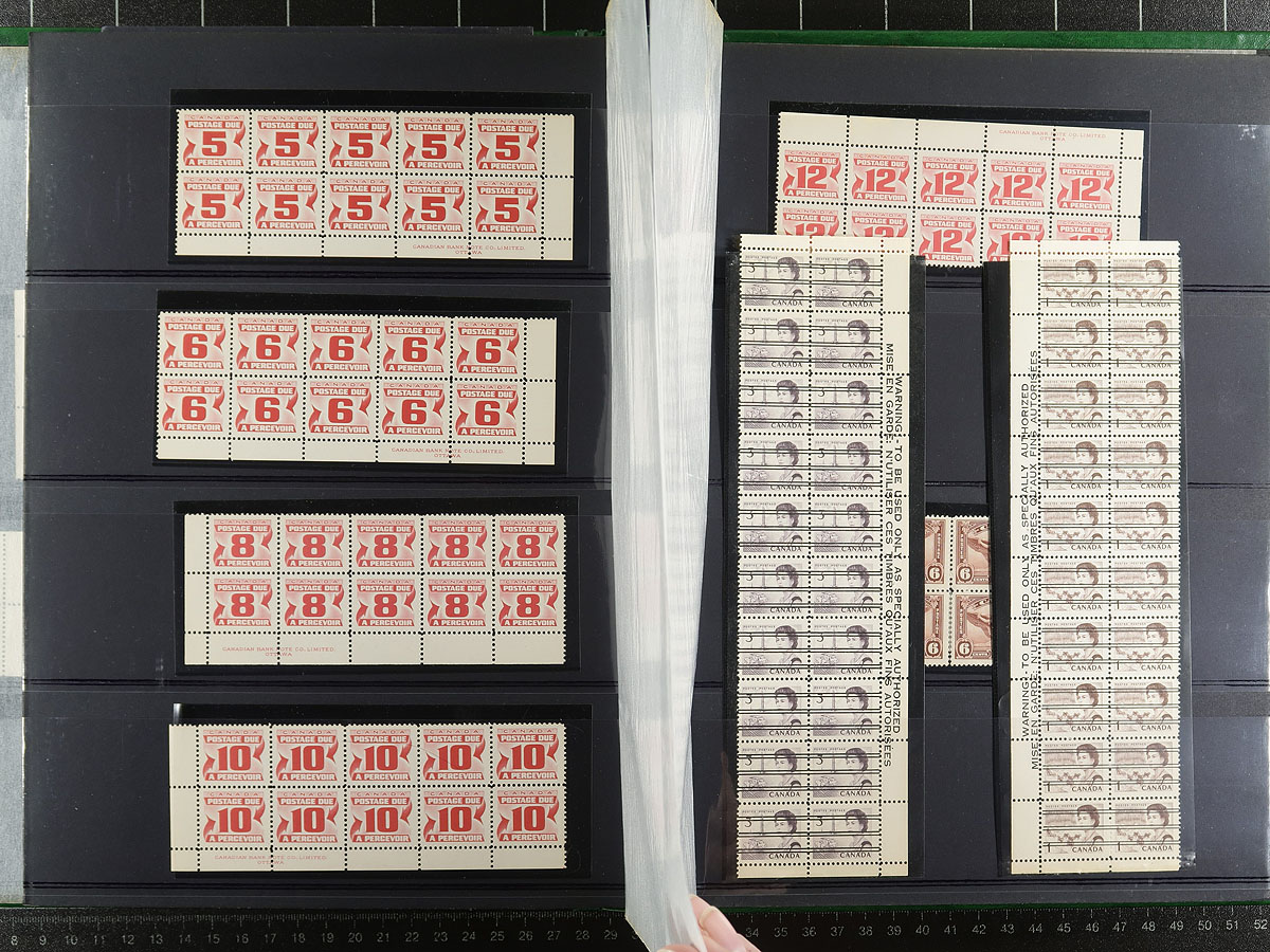 Nice grouping of primarily never hinged material in a full 32 page, 4 line stockbook, containing a nice array of items. The group generally ranges from the 1940's to the 1970's, including many plate blocks (including semi-postals and postage dues), coil pairs, booklets (including a few Conservation booklets), mini panes, precancels, along with used varieties as noted by the owner in 102 cards. A spot check indicated some items cataloguing from $5 to $10 each, making this a very useful lot, with all pages photographed online. Should be worth our estimate. Estimate =