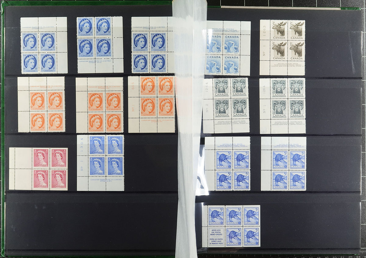 Nice grouping of primarily never hinged material in a full 32 page, 4 line stockbook, containing a nice array of items. The group generally ranges from the 1940's to the 1970's, including many plate blocks (including semi-postals and postage dues), coil pairs, booklets (including a few Conservation booklets), mini panes, precancels, along with used varieties as noted by the owner in 102 cards. A spot check indicated some items cataloguing from $5 to $10 each, making this a very useful lot, with all pages photographed online. Should be worth our estimate. Estimate =