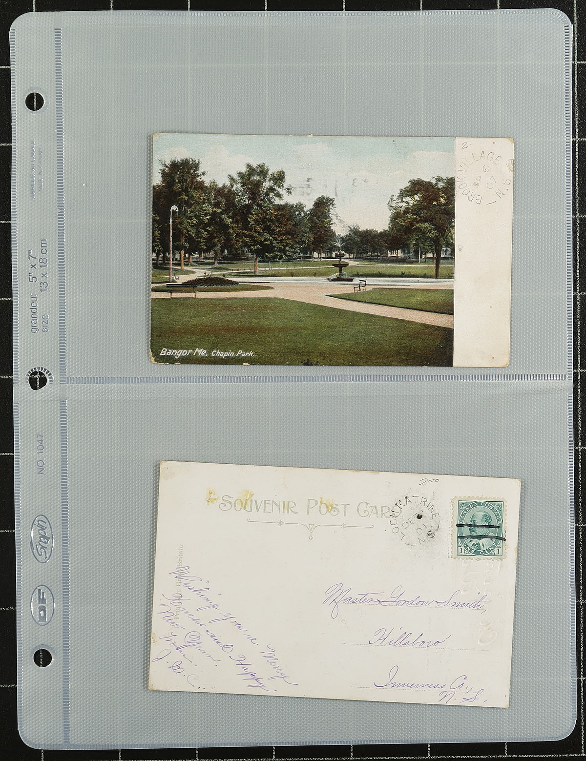 Lovely little group of roughly 90 postcards collected for town postmarks, 1900's-', along with roughly 50 postmarks close cut on piece, all in several plastic pages housed in a binder. The majority of items have Ontario postmarks, along with representation from Quebec, Nova Scotia, and New Brunswick, the majority on postcards franked with the 1c Edward issue. We note split rings, cds, duplex, along with a few modern postmarks, and a few receiving postmarks from foreign mail, noting a good representation of smaller towns. A nice lot for the postmark collector, with a few cards having a few small corner faults etc., overall fine to very fine. Estimate =