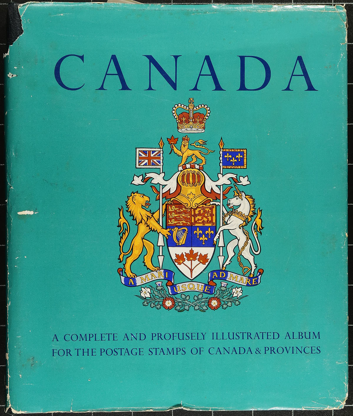 Accumulation of many thousands of used stamps filling a bankers box in a variety of formats, 1870's-1980's. The lot contains 4 red boxes with lids, with a few thousand 102 cards, generally ranging from Scott #25/560 (majority 1940s onwards, did spot 10c Small Queen (x3)), stockbook of used from the Small Queens up to the 1960's (noted a used 50c Bluenose), album pages, and loose material. A nice lot with possible finds for the dedicated collector, including "socked on the nose" town postmarks. A good winter project, overall fine to very fine. Estimate =