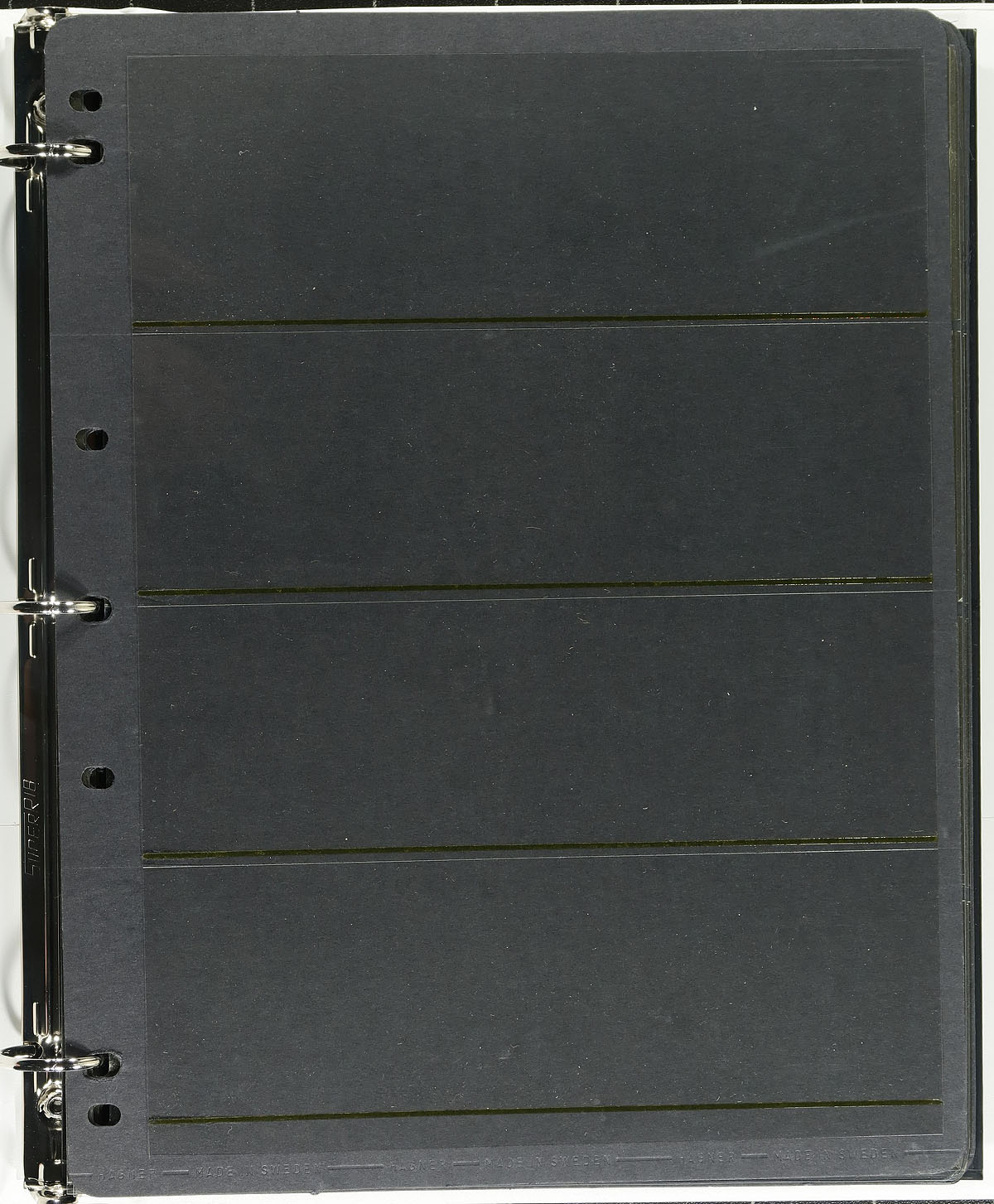 Accumulation of Vario-style or Hagner style stock pages in 6 binders and loose pages in a bankers box. Almost all the pages are double-sided and only a few not 3-hole punched for easy storage noting: single page (x30, ideal for souvenir sheets), large single page (x30), 2-row (x85, ideal for covers), 3-row (x13), 4-row (x13), 4-line (x40, ideal for blocks), along with 40 additional pages with a variety of configurations. Mostly in gently used condition and still useful for all collectors. Original retail price would be several hundreds of dollars. Estimate =