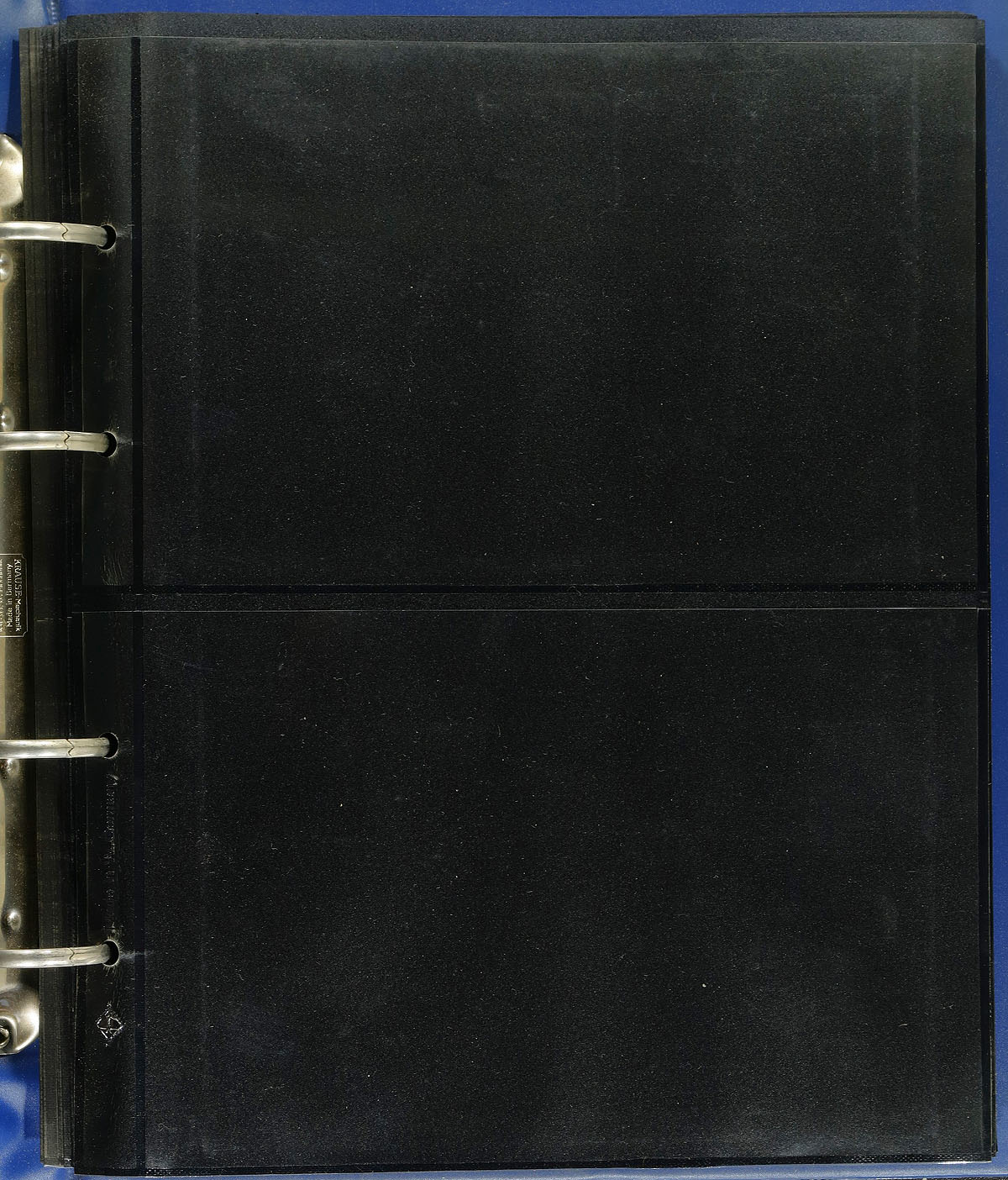 Accumulation of Vario-style or Hagner style stock pages in 6 binders and loose pages in a bankers box. Almost all the pages are double-sided and only a few not 3-hole punched for easy storage noting: single page (x30, ideal for souvenir sheets), large single page (x30), 2-row (x85, ideal for covers), 3-row (x13), 4-row (x13), 4-line (x40, ideal for blocks), along with 40 additional pages with a variety of configurations. Mostly in gently used condition and still useful for all collectors. Original retail price would be several hundreds of dollars. Estimate =