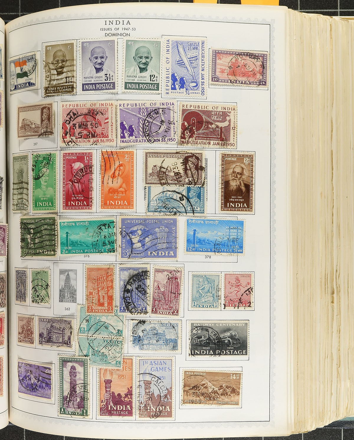 Massive worldwide collection in an overwhelming Minkus Master Global Album and a Harris Senior Statesman Album, 1860's-1970's. The albums most likely contain 20,000 primarily used stamps, covering countries from A to Z, with better representation from European countries, namely France and Colonies, Austria, Germany and States, Belgium, and much more, China, United States, India and States, British Commonwealth areas, and so much more, including back of the book issues for some countries (railway stamps, newspaper stamps, occupations, etc.). The bulk of the value is in the Minkus album, as the stamps range from the 1860's to the early 1960's, with the Statesman album covers years from the 1960's to the 1970's, with a spot check indicating singles and sets cataloguing $10 and up. Postmark interest includes cds, numeral, and other types, noting several "socked on the nose" town cancels. An ideal lot for the worldwide collector, with online photos showing a sampling, overall fine to very fine. Offered as received, one collector's lifetime holding. Estimate =