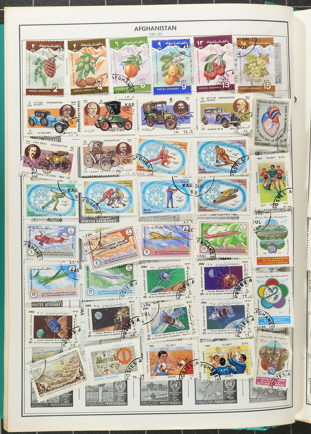 Massive worldwide collection in an overwhelming Minkus Master Global Album and a Harris Senior Statesman Album, 1860's-1970's. The albums most likely contain 20,000 primarily used stamps, covering countries from A to Z, with better representation from European countries, namely France and Colonies, Austria, Germany and States, Belgium, and much more, China, United States, India and States, British Commonwealth areas, and so much more, including back of the book issues for some countries (railway stamps, newspaper stamps, occupations, etc.). The bulk of the value is in the Minkus album, as the stamps range from the 1860's to the early 1960's, with the Statesman album covers years from the 1960's to the 1970's, with a spot check indicating singles and sets cataloguing $10 and up. Postmark interest includes cds, numeral, and other types, noting several "socked on the nose" town cancels. An ideal lot for the worldwide collector, with online photos showing a sampling, overall fine to very fine. Offered as received, one collector's lifetime holding. Estimate =
